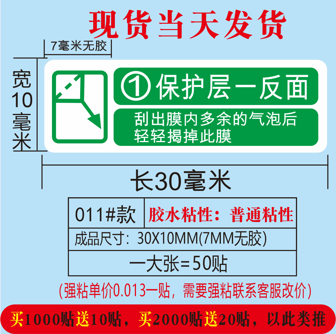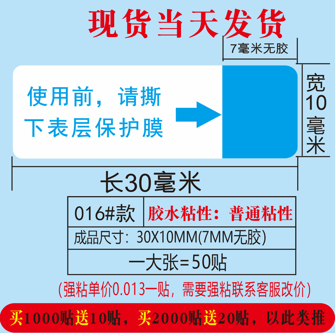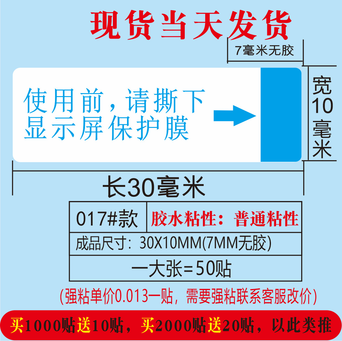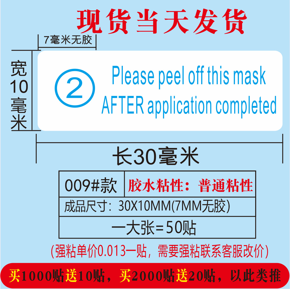 (红色使用前请撕掉保护膜;30*10MM)