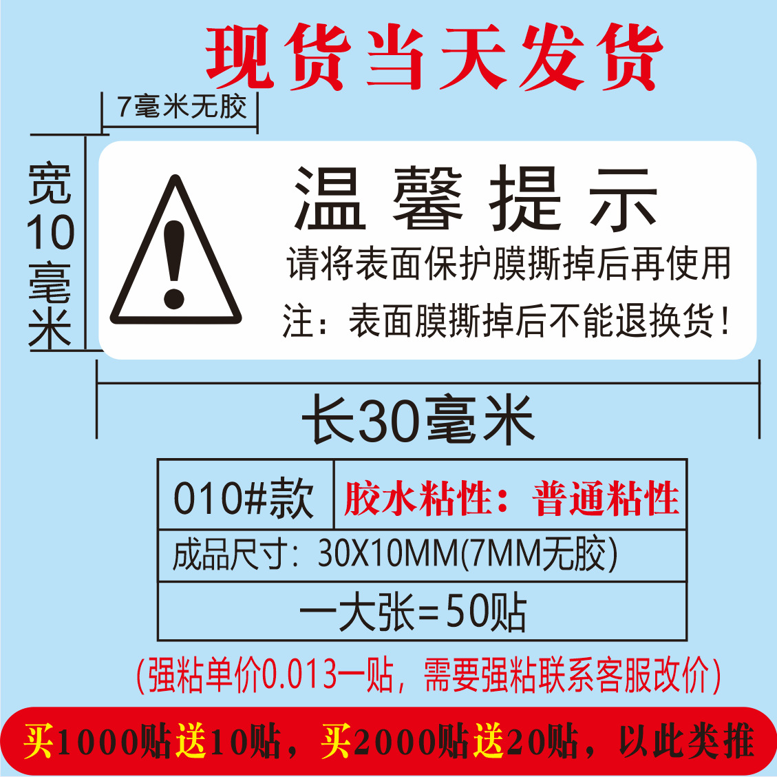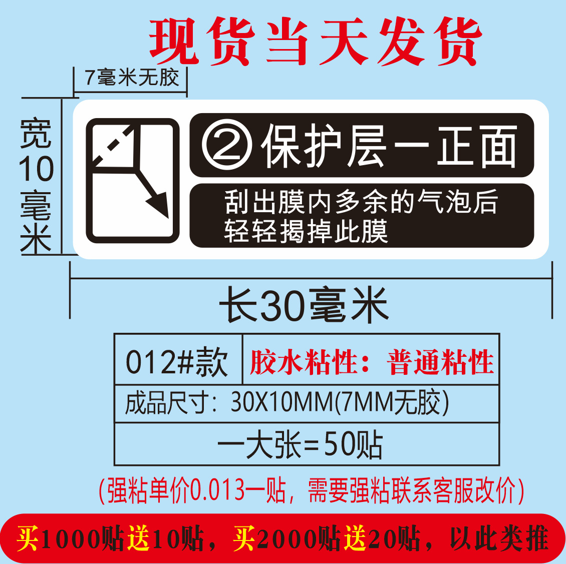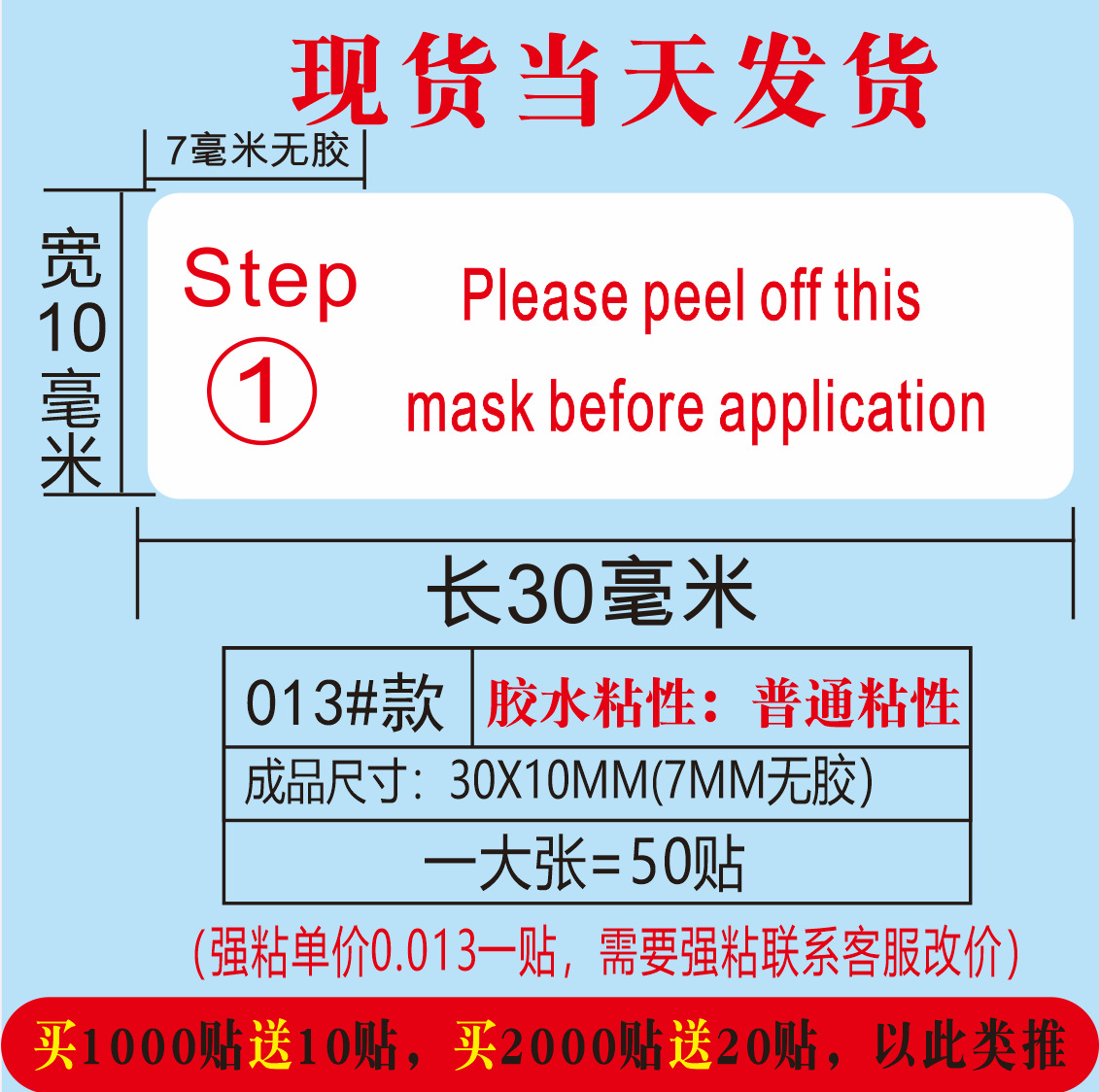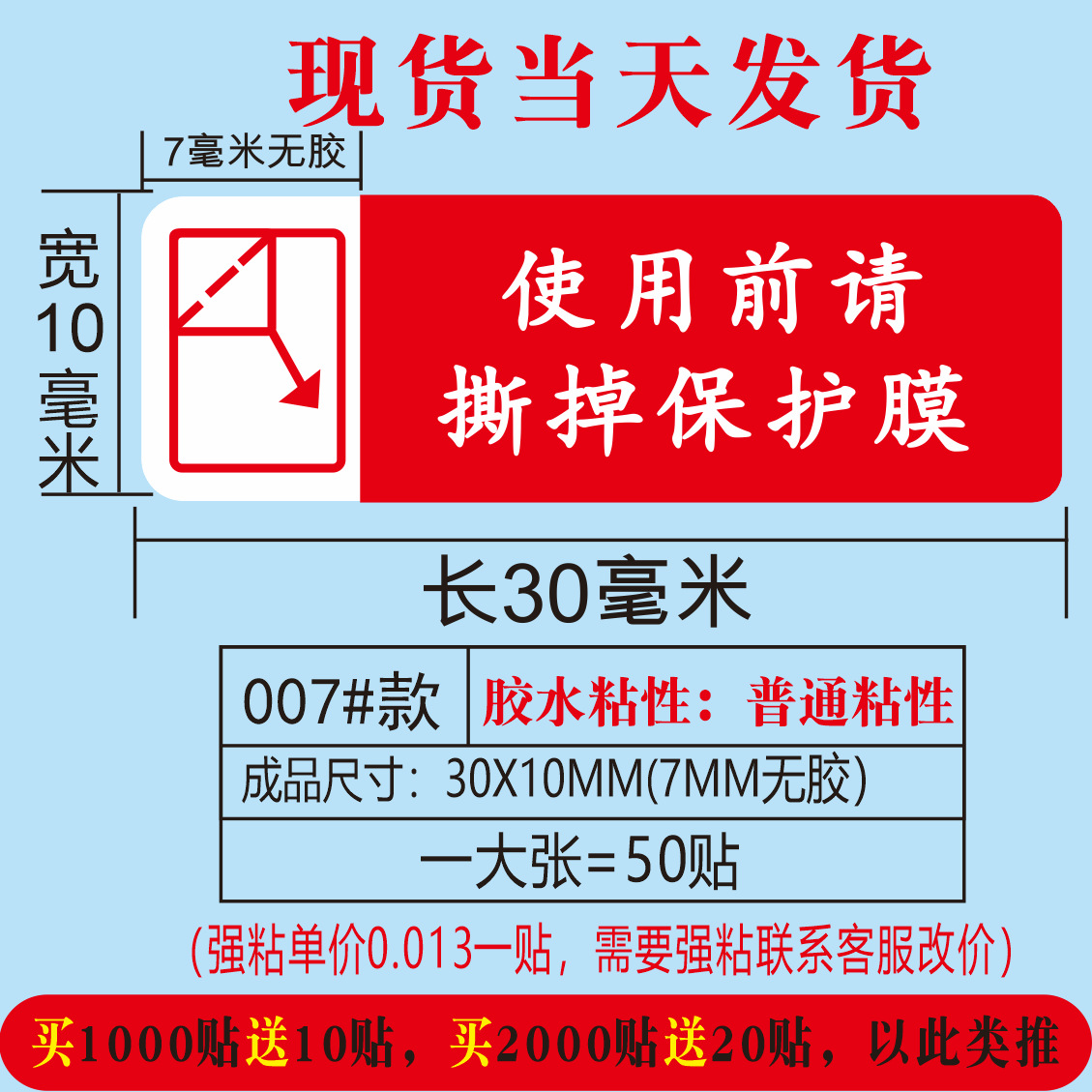 (红色使用前请撕掉保护膜;30*10MM)