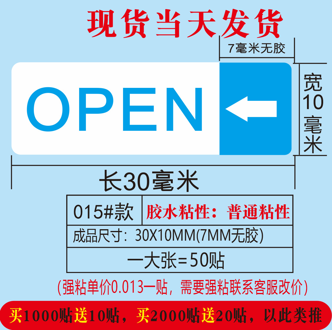 蓝色箭头OPEN;30*10MM