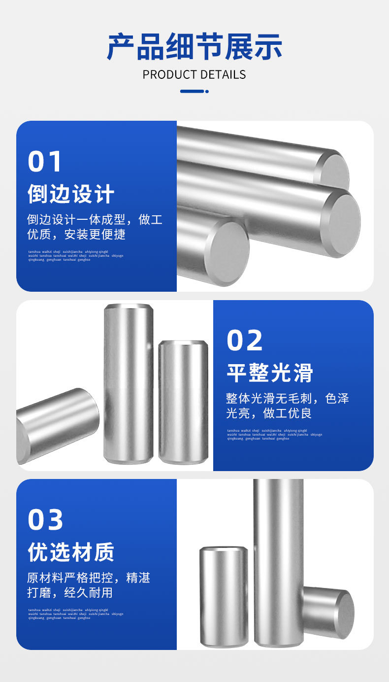 销钉304不锈钢圆柱销GB119精密倒角实心销子定位销固定销M1M2-M16