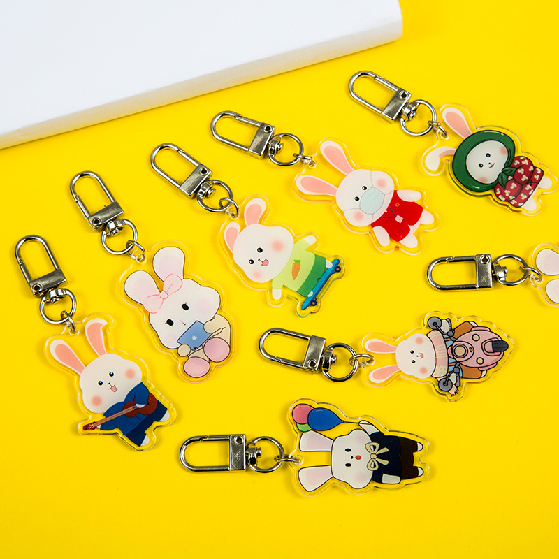 새로운 만화 애니메이션 펜던트 부드러운 귀여운 토끼 아크릴 키 체인 도매 선물 액세서리 펜던트 사용자 정의