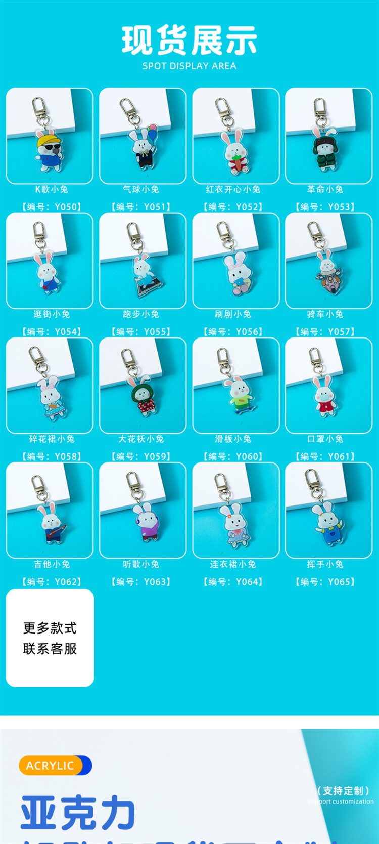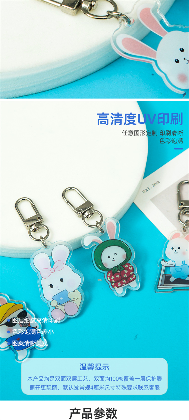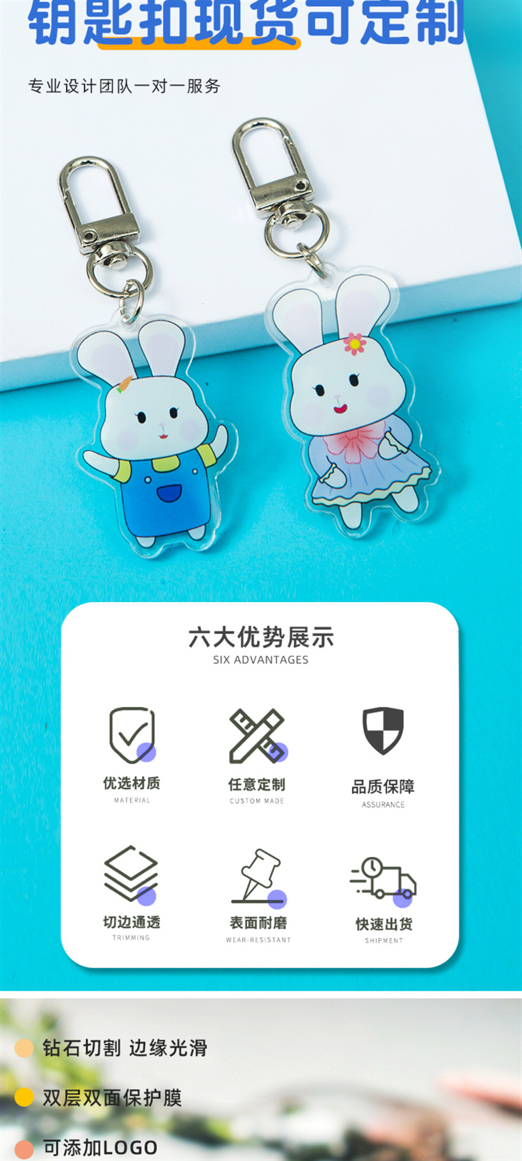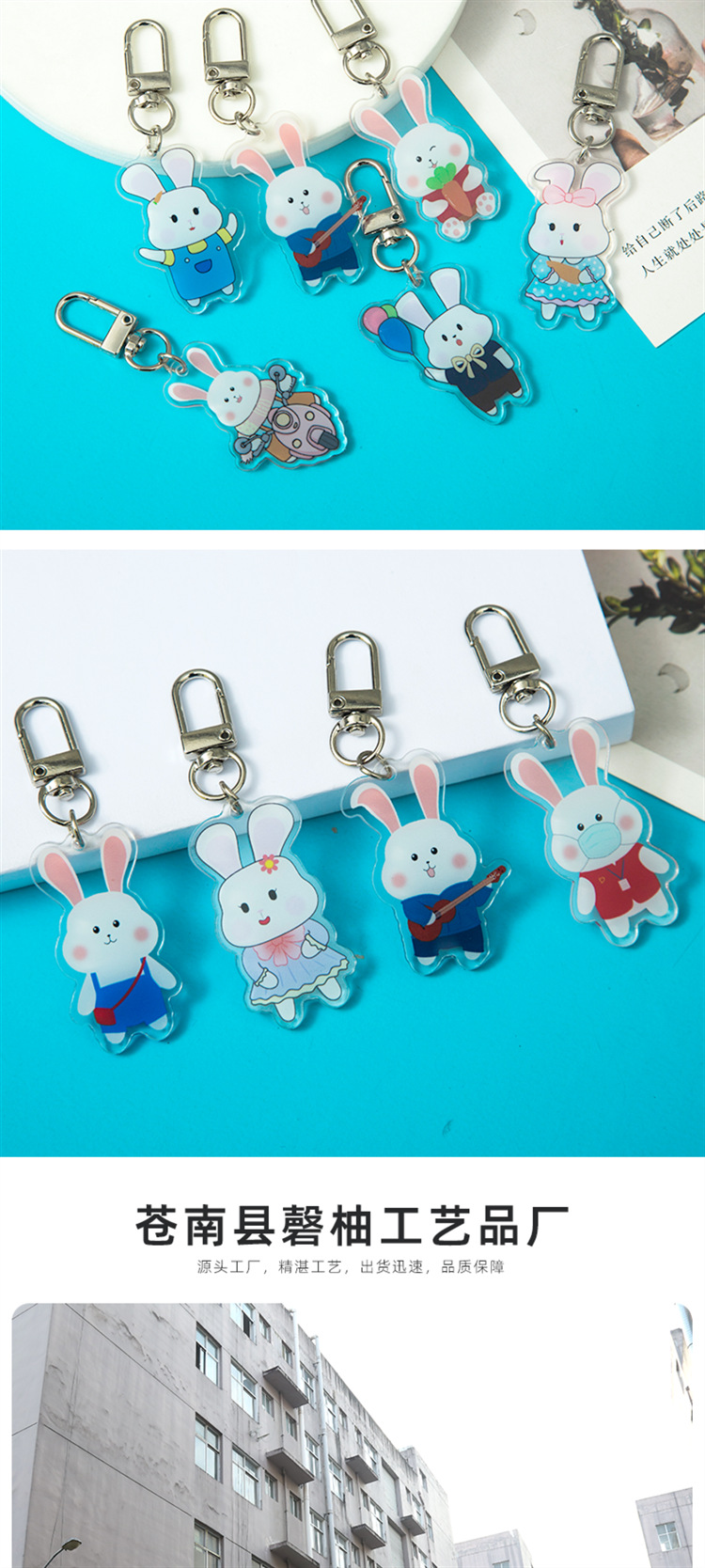 新款卡通动漫挂件软萌可爱兔子亚克力钥匙扣批发礼品配饰挂件定制