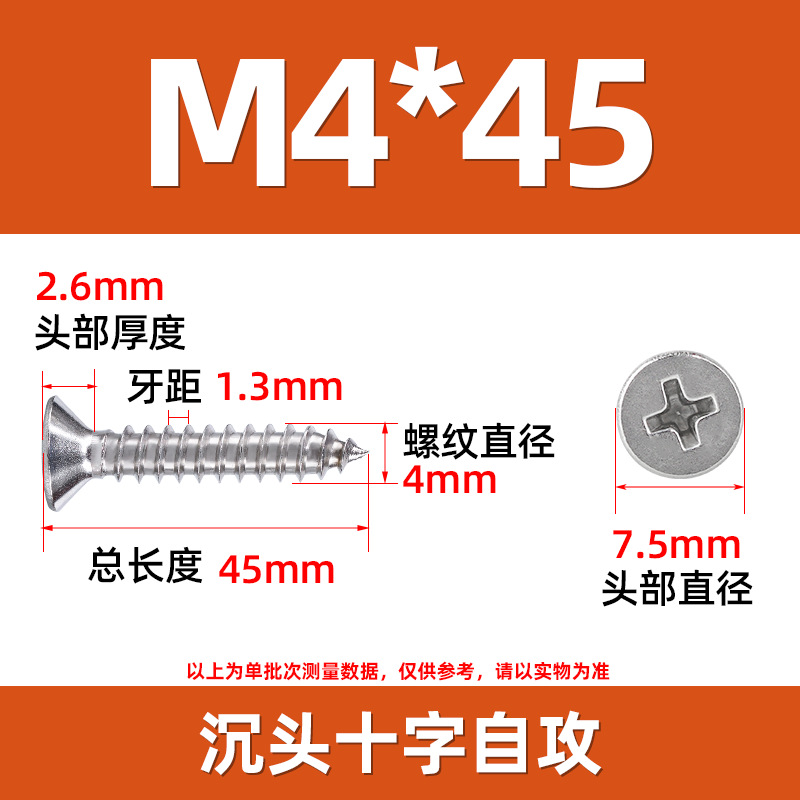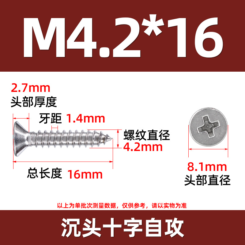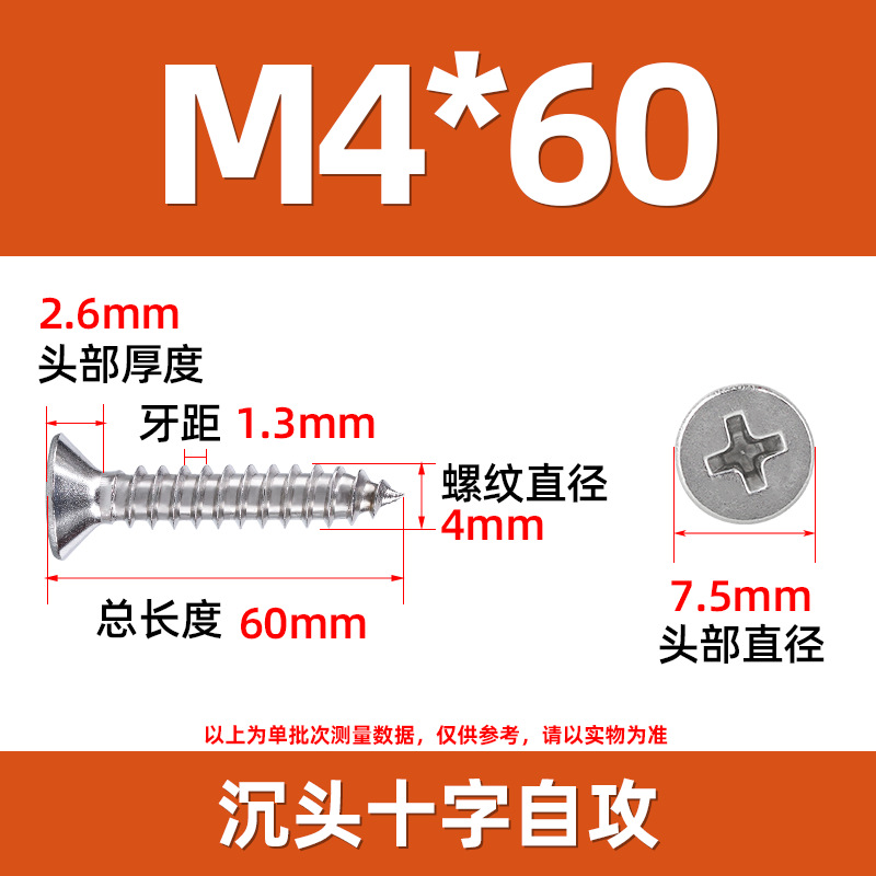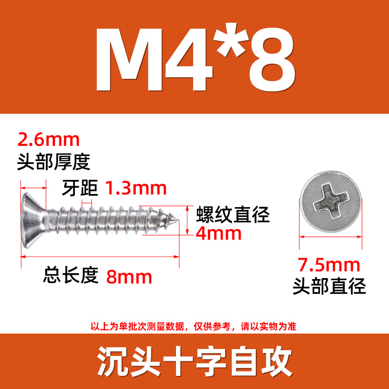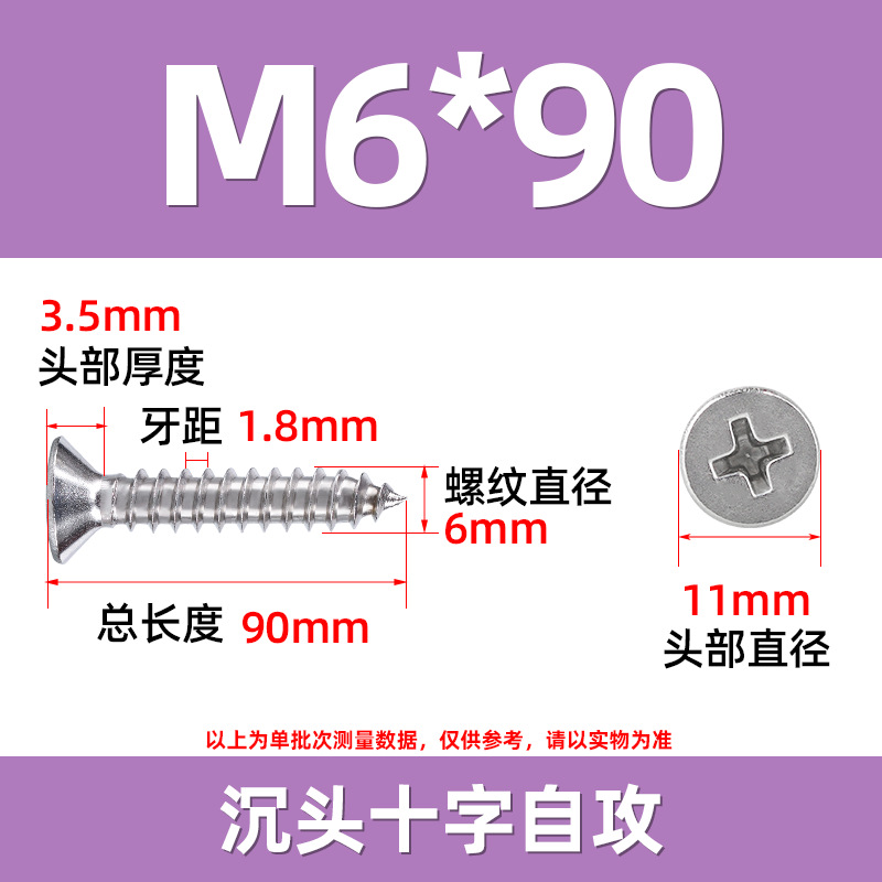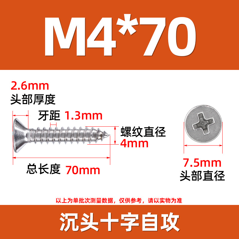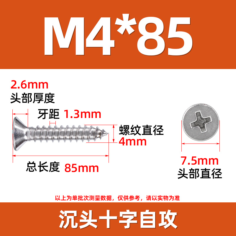 304不锈钢沉头自攻螺丝 846平头十字槽螺钉 KA十字纤维板钉M2-M8