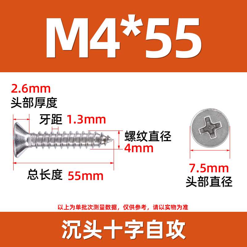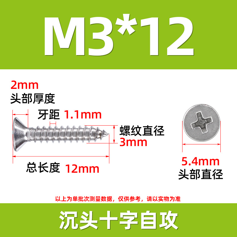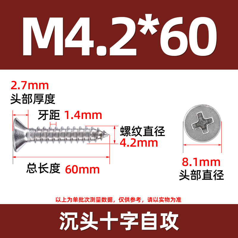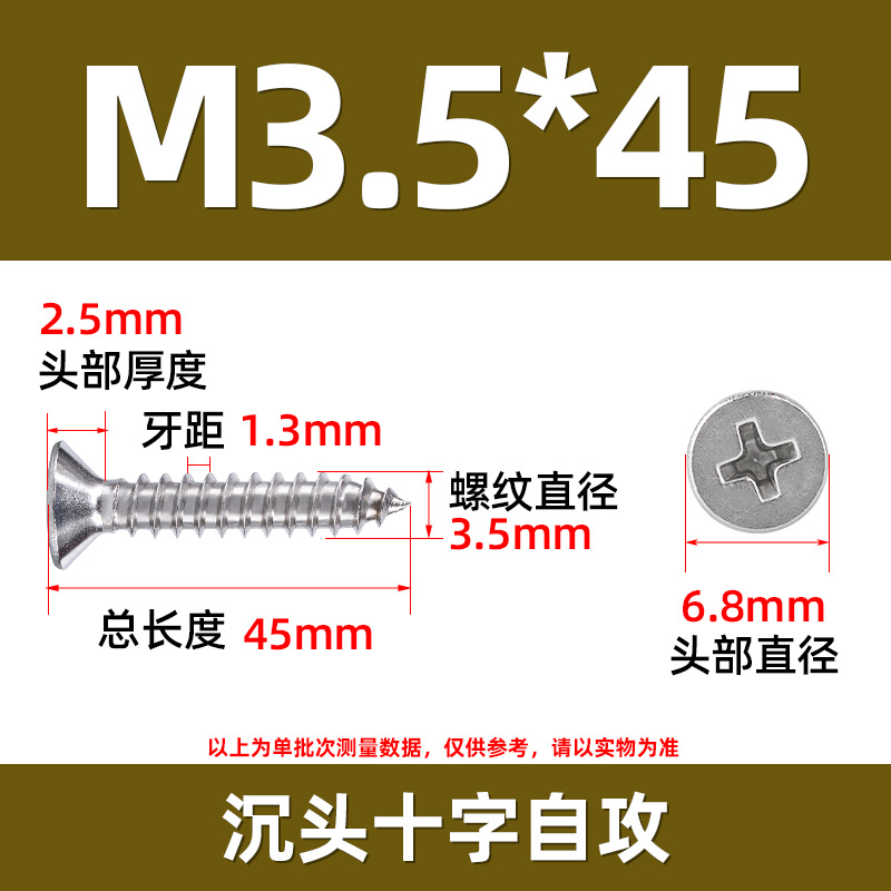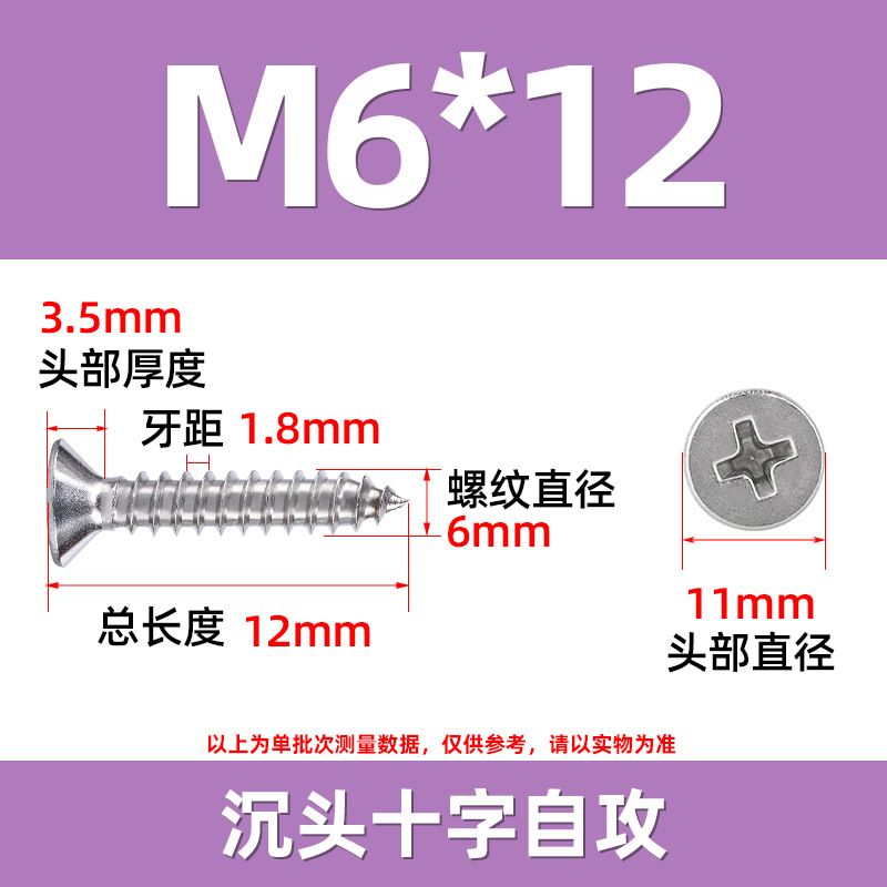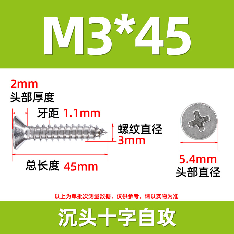 304不锈钢沉头自攻螺丝 846平头十字槽螺钉 KA十字纤维板钉M2-M8