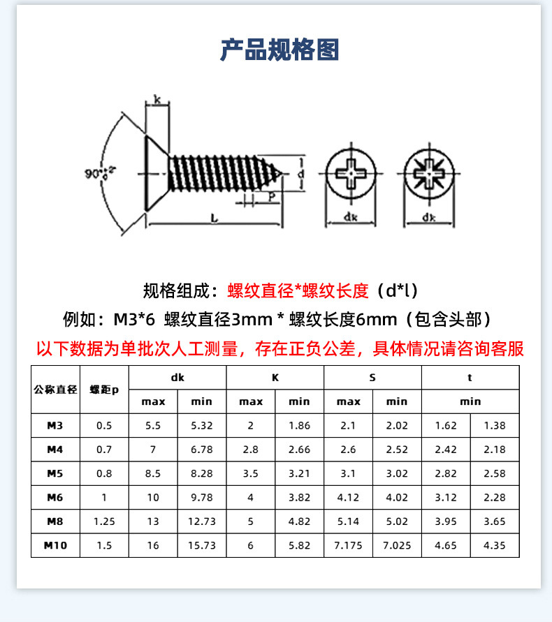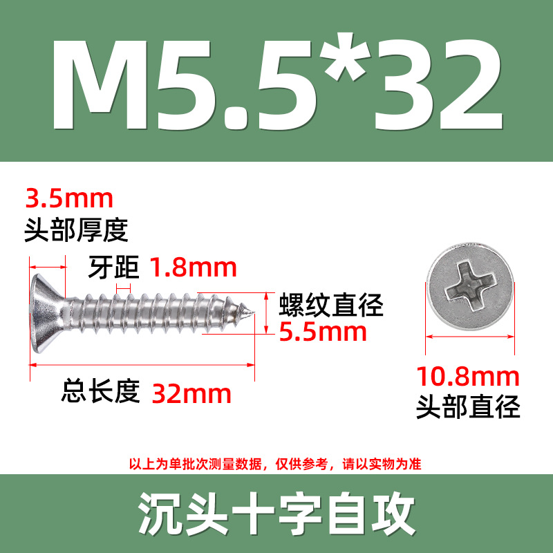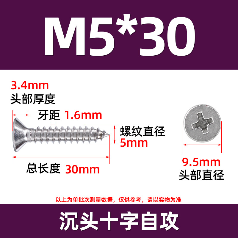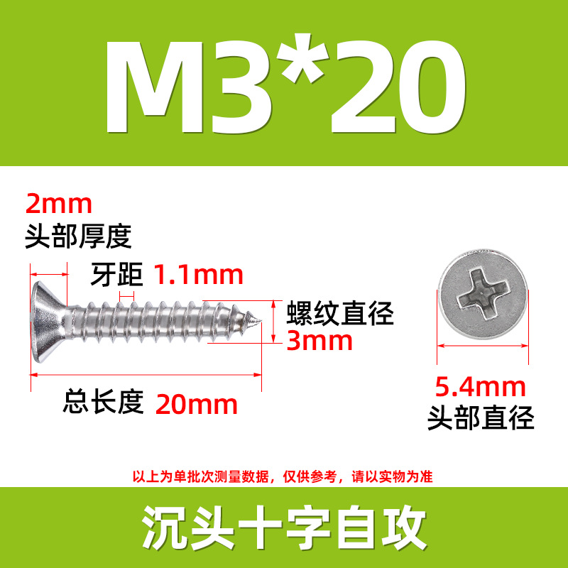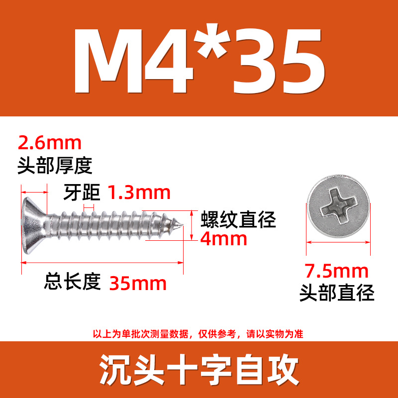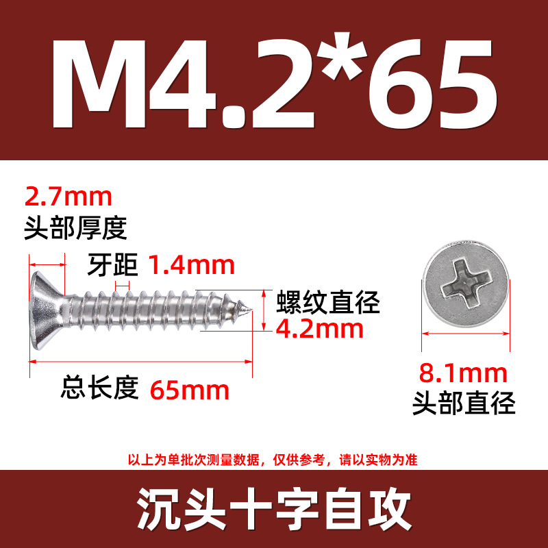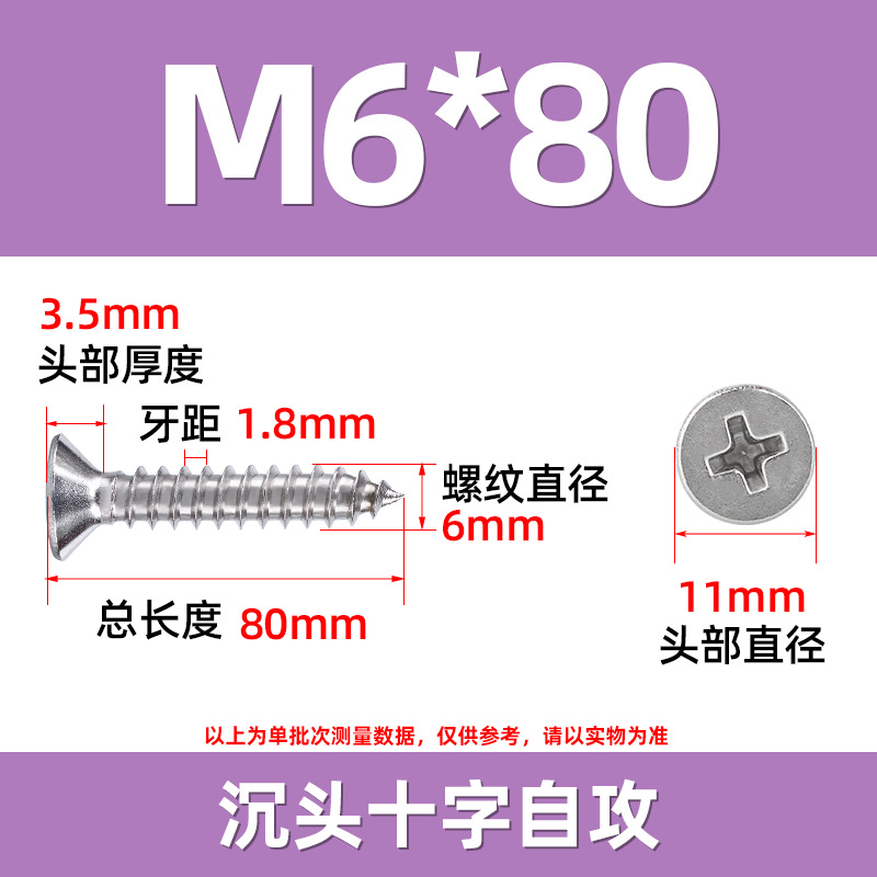304不锈钢沉头自攻螺丝 846平头十字槽螺钉 KA十字纤维板钉M2-M8