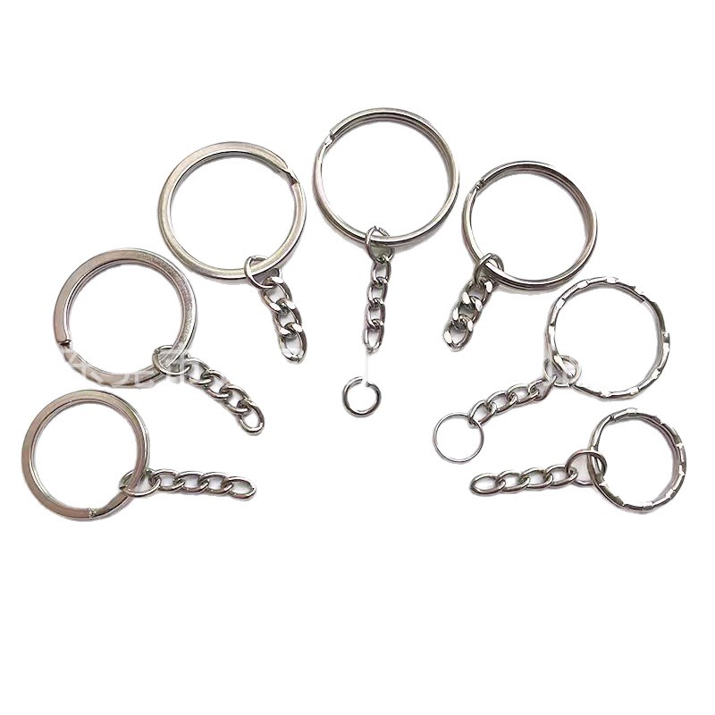钥匙圈带链 25光圈平圈花圈双圈带链子 金属钥匙扣钥匙圈链子批发