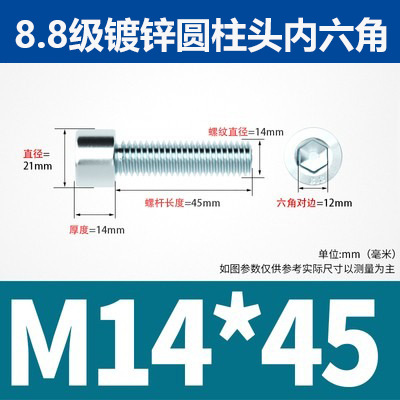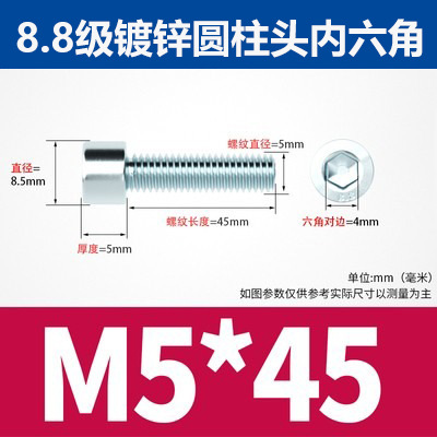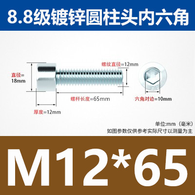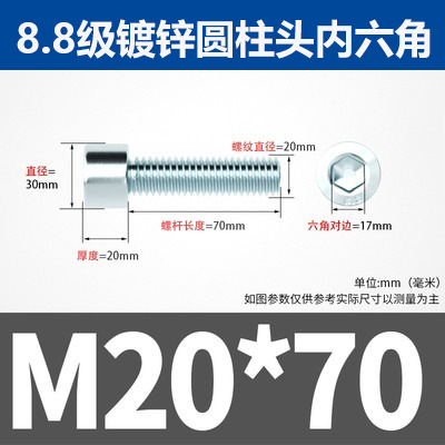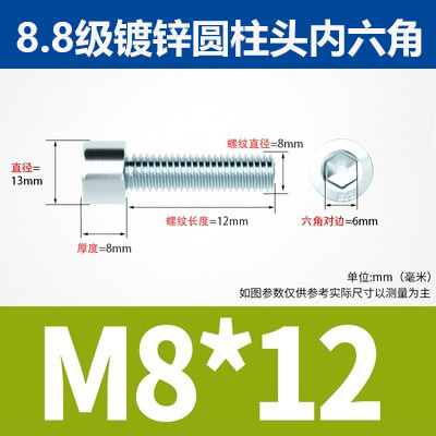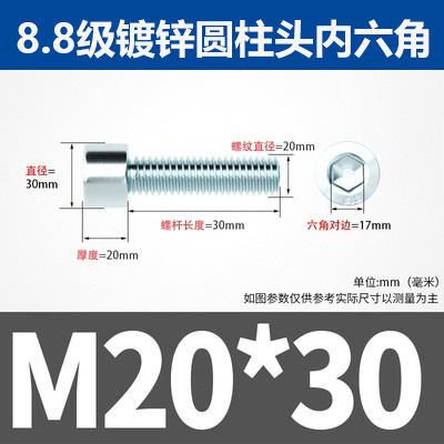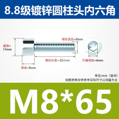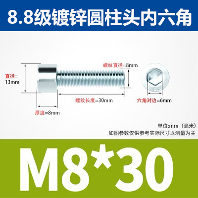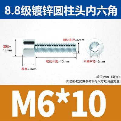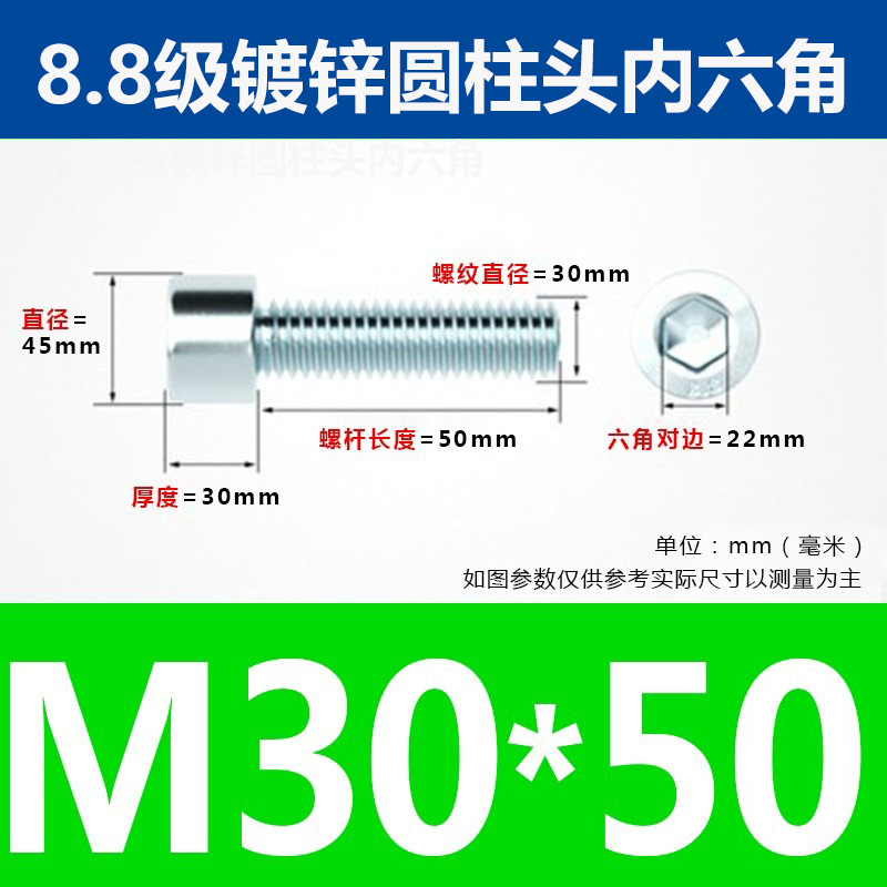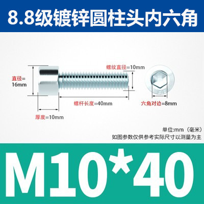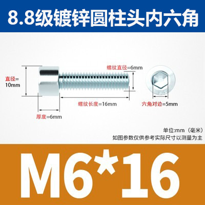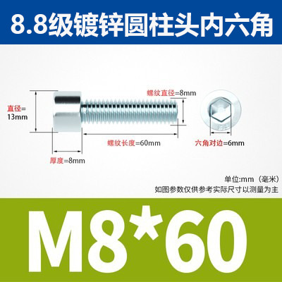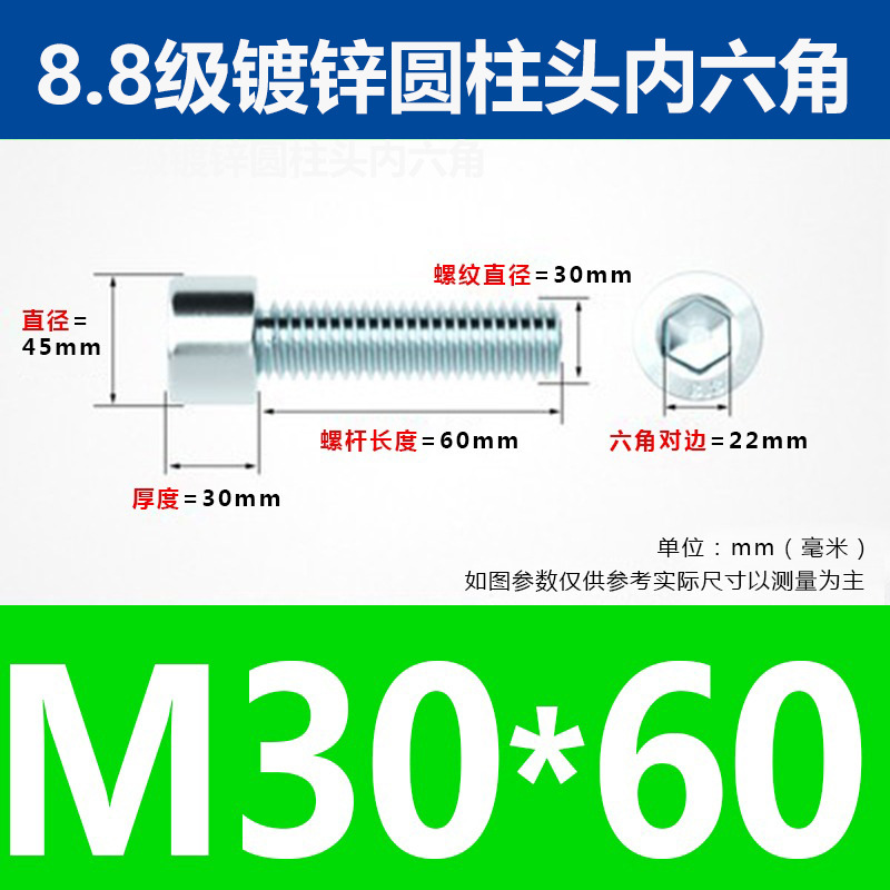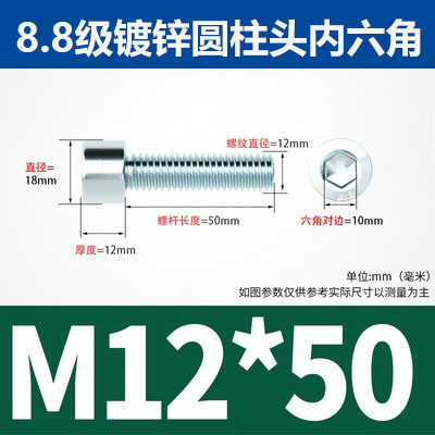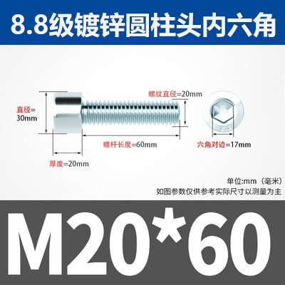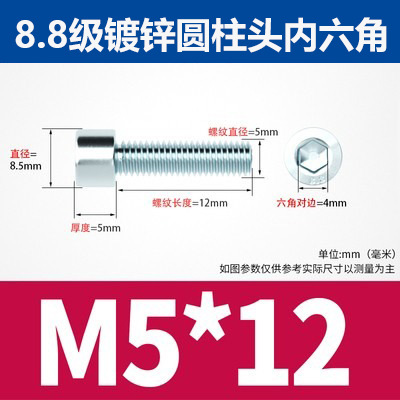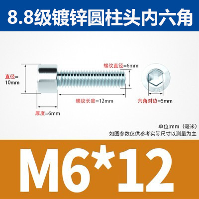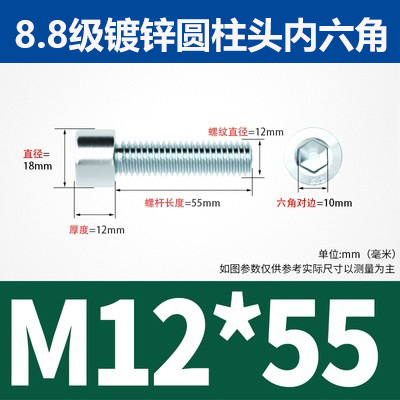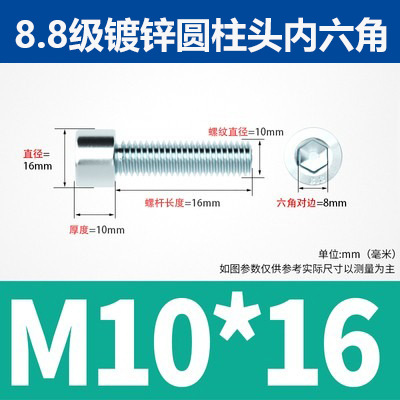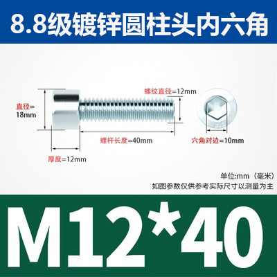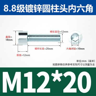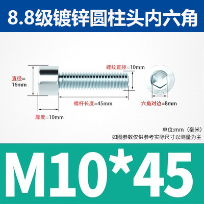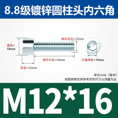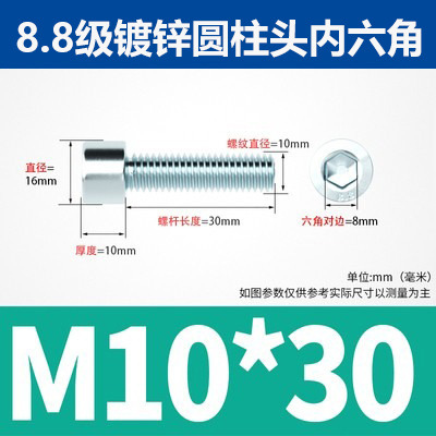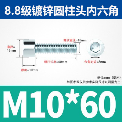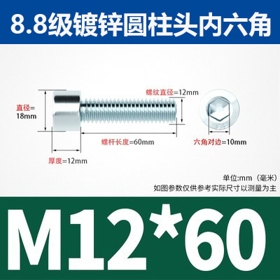 国标8.8级镀锌内六角螺丝钉高强度杯头圆柱头螺栓M4M5M6M8M10M12