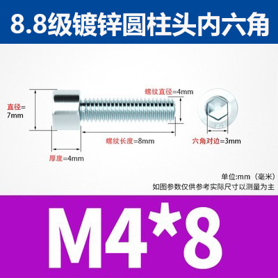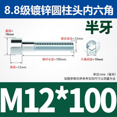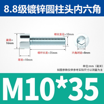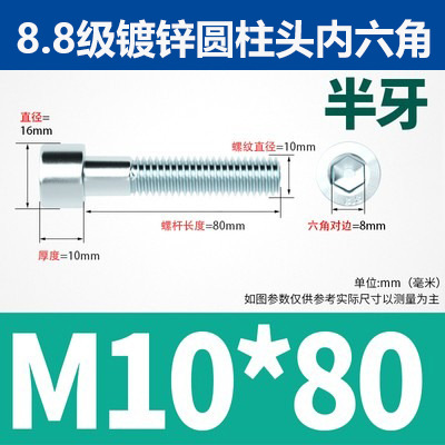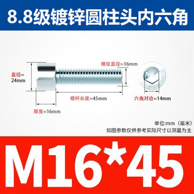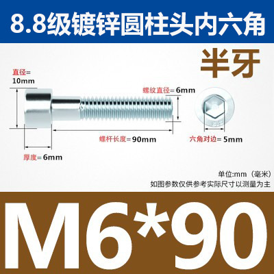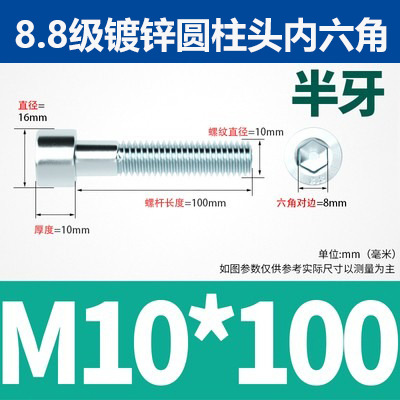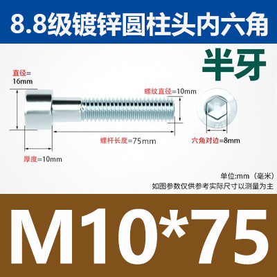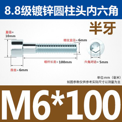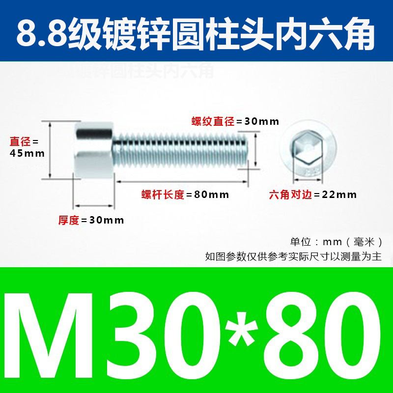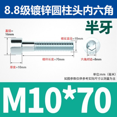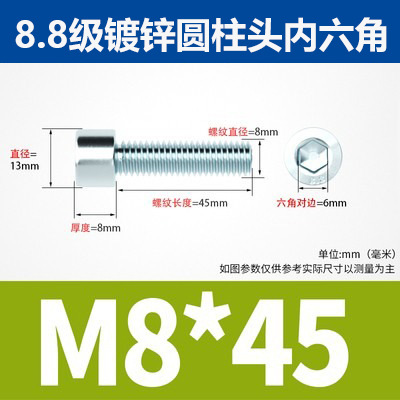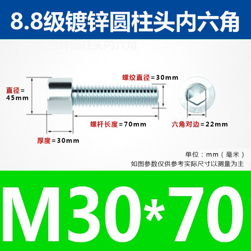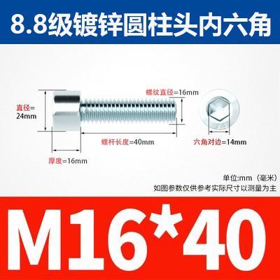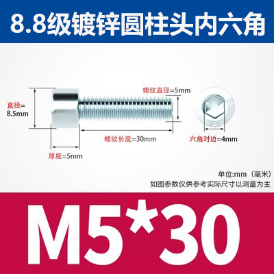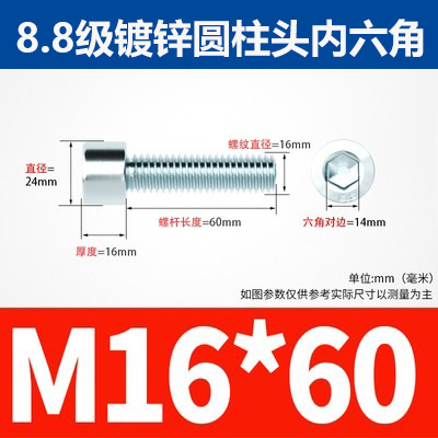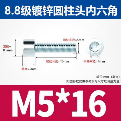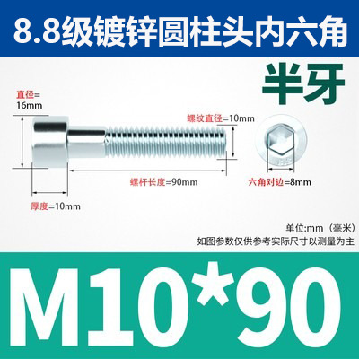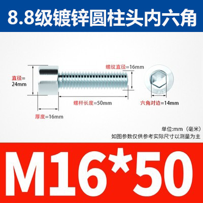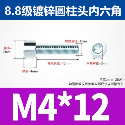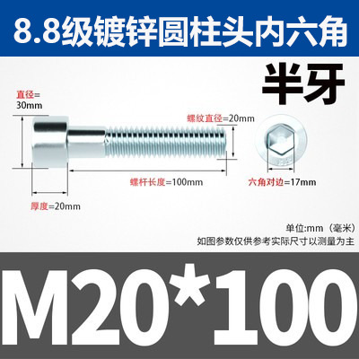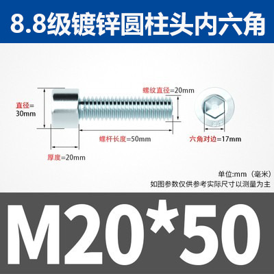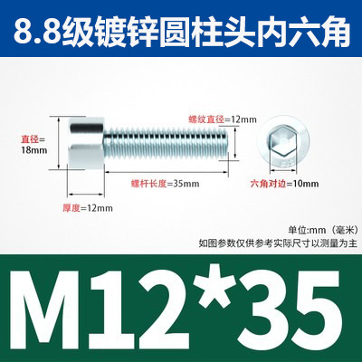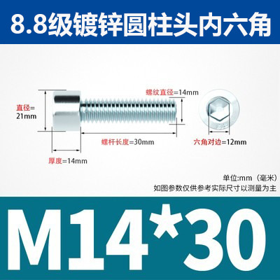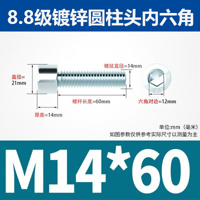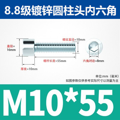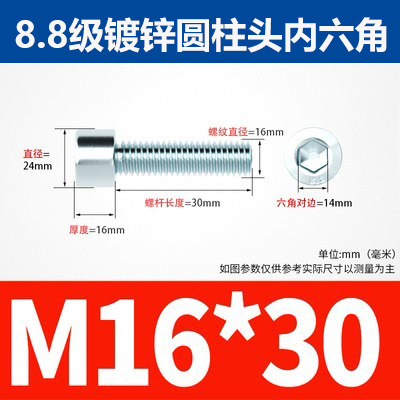 国标8.8级镀锌内六角螺丝钉高强度杯头圆柱头螺栓M4M5M6M8M10M12