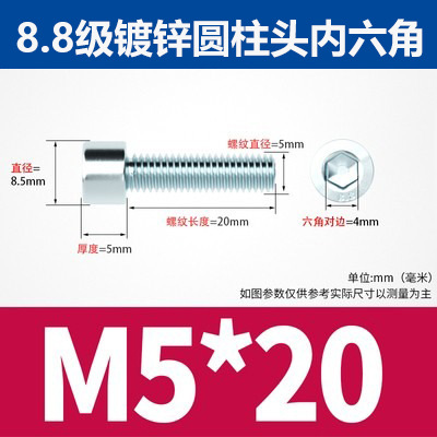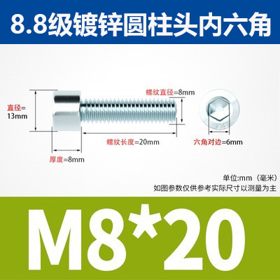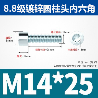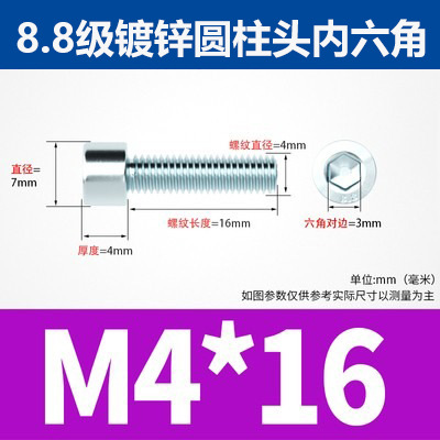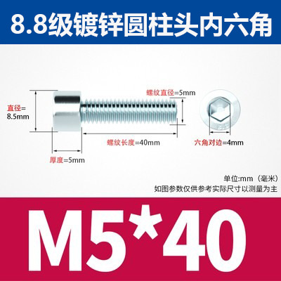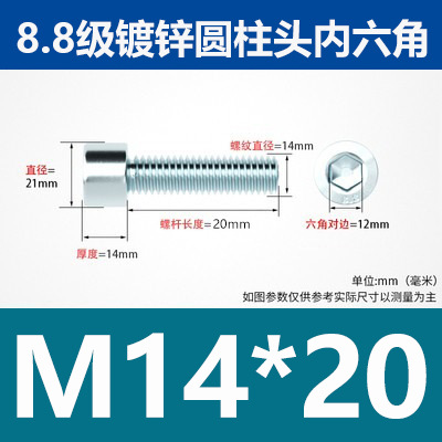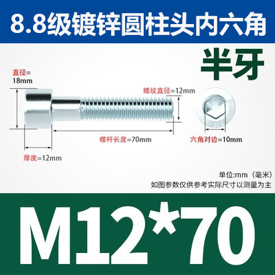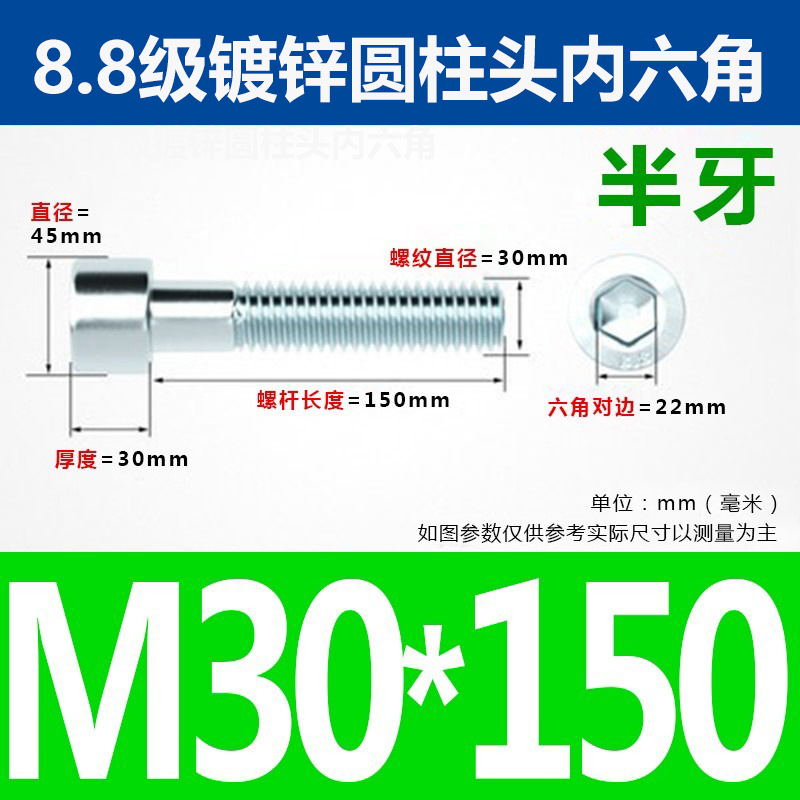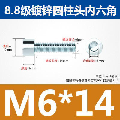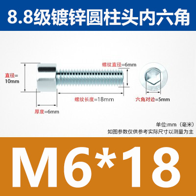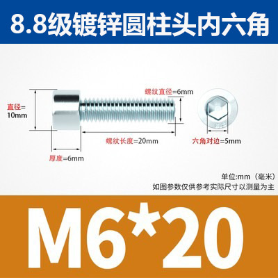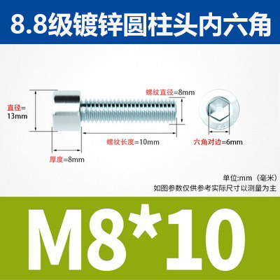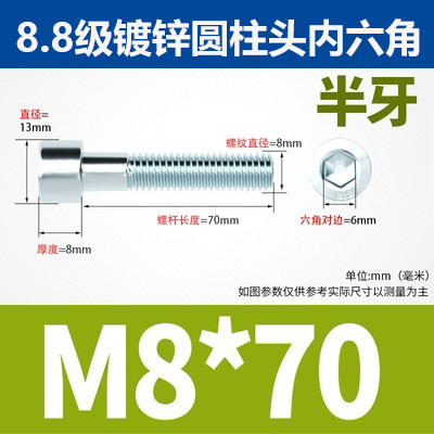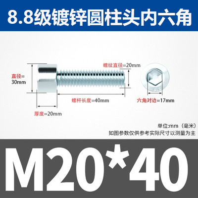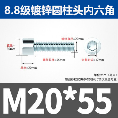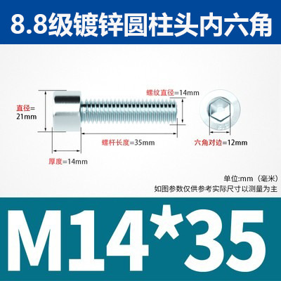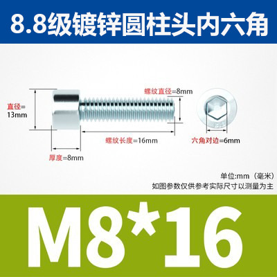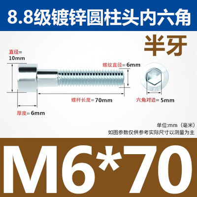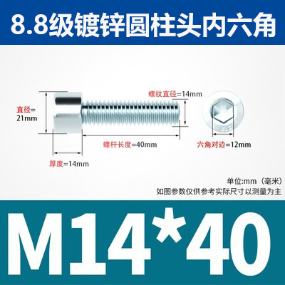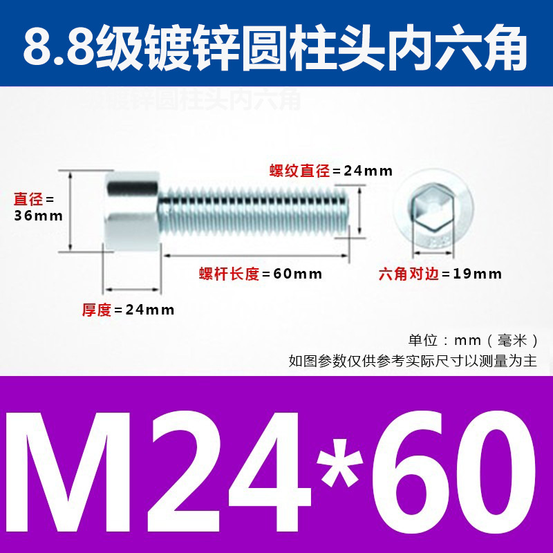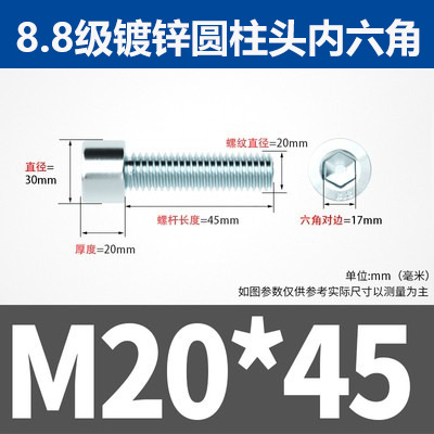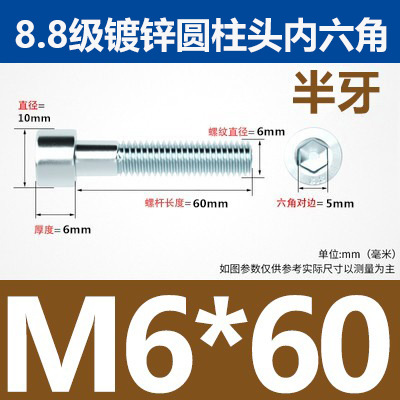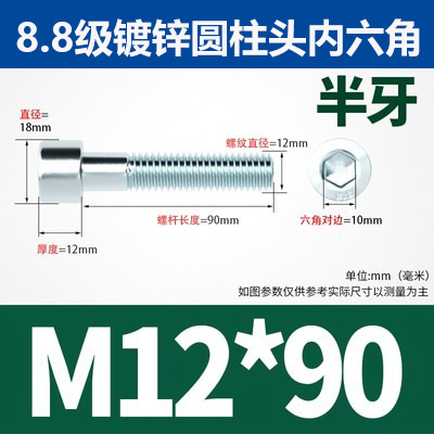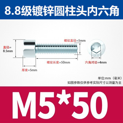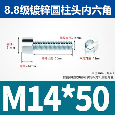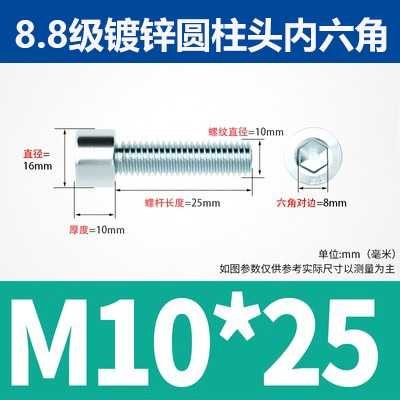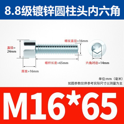 国标8.8级镀锌内六角螺丝钉高强度杯头圆柱头螺栓M4M5M6M8M10M12