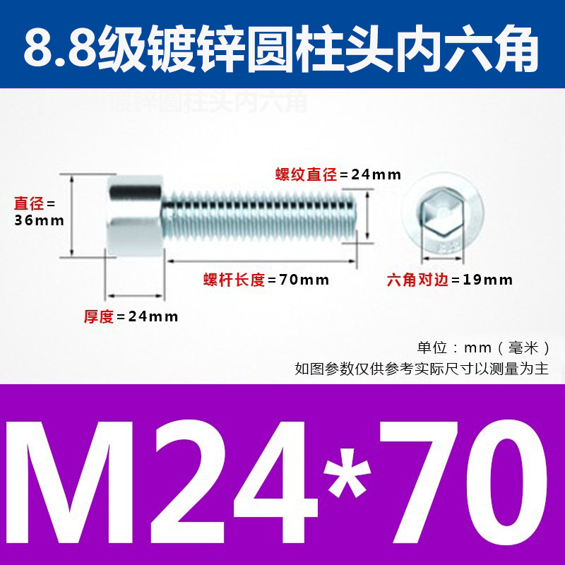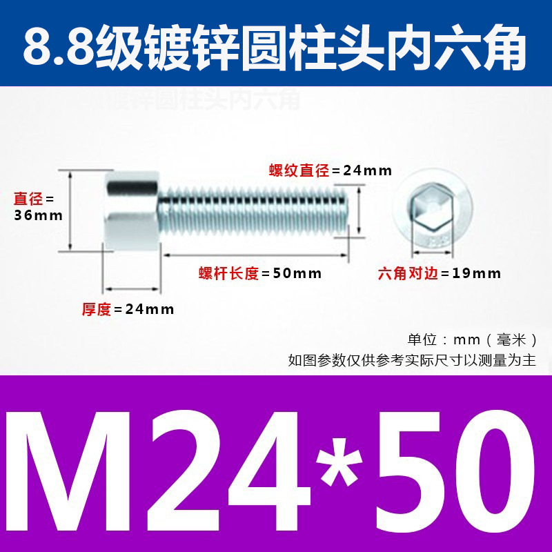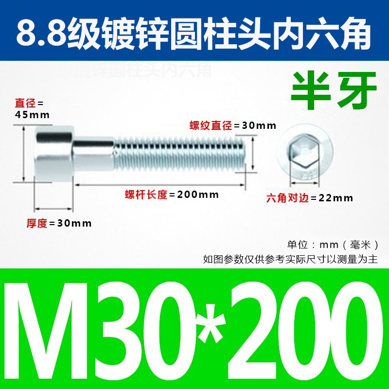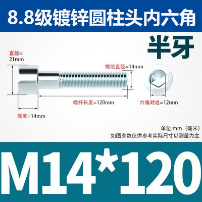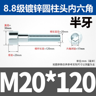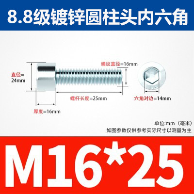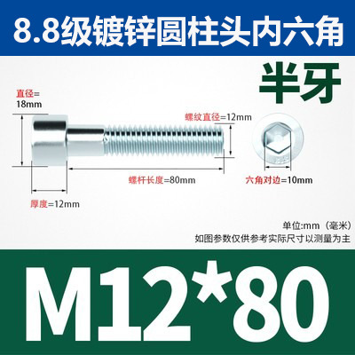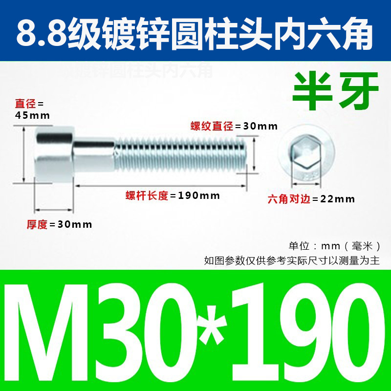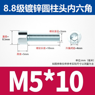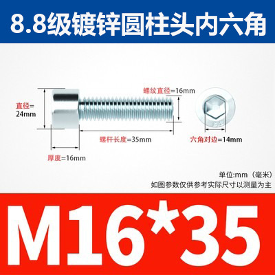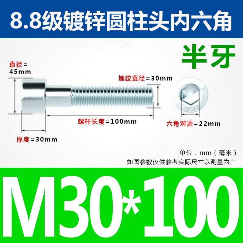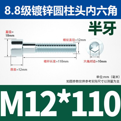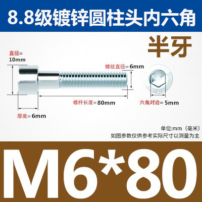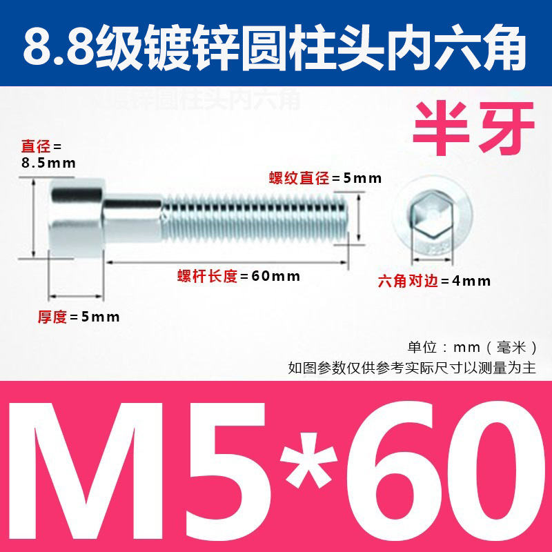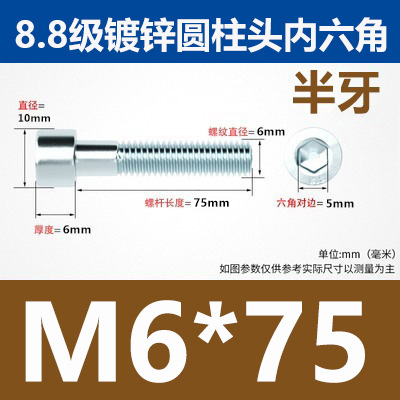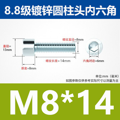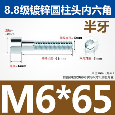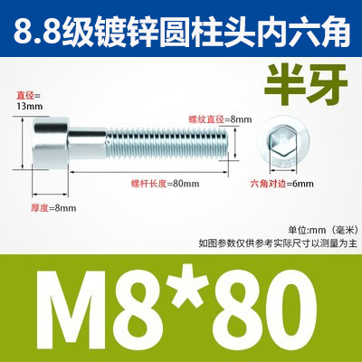 国标8.8级镀锌内六角螺丝钉高强度杯头圆柱头螺栓M4M5M6M8M10M12