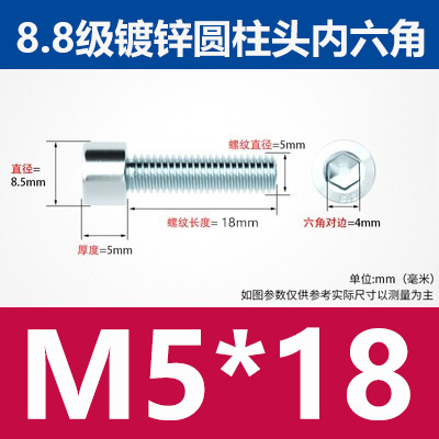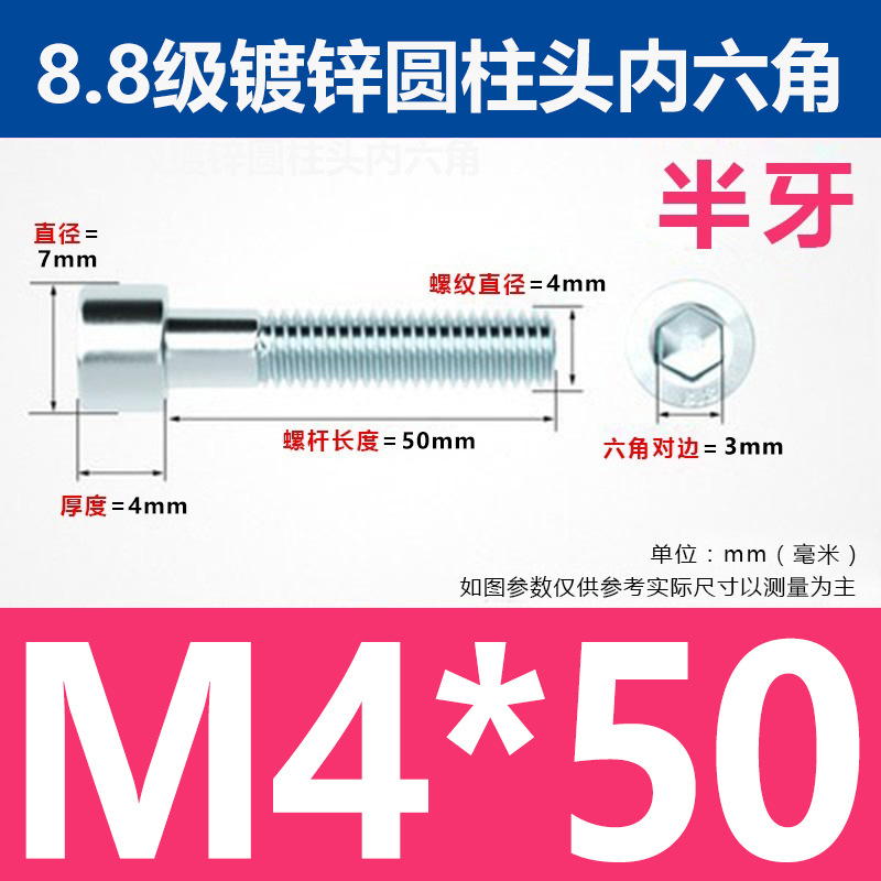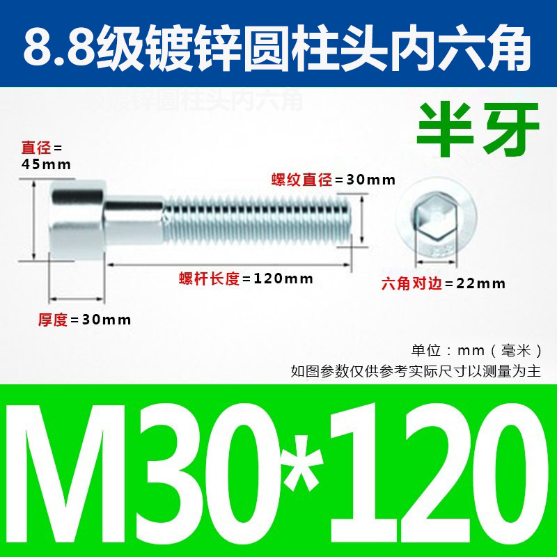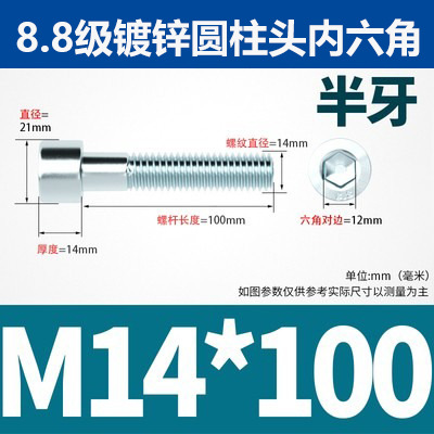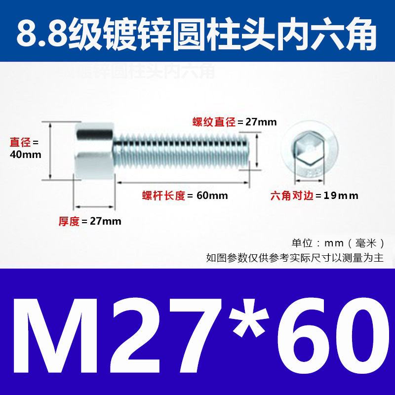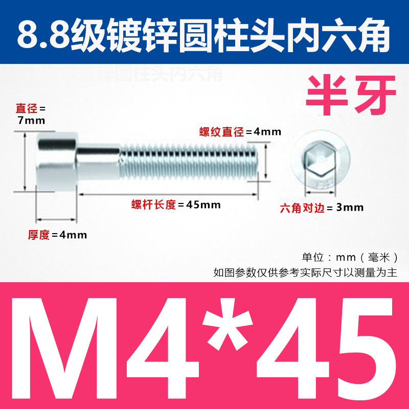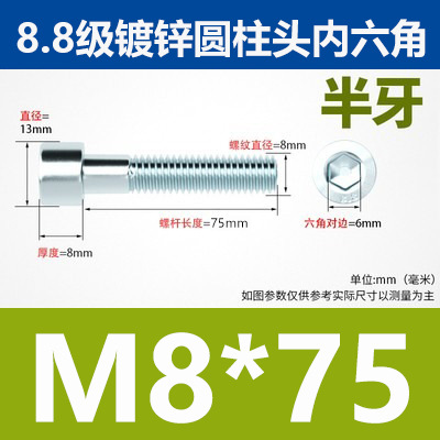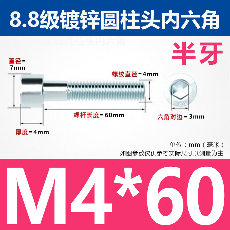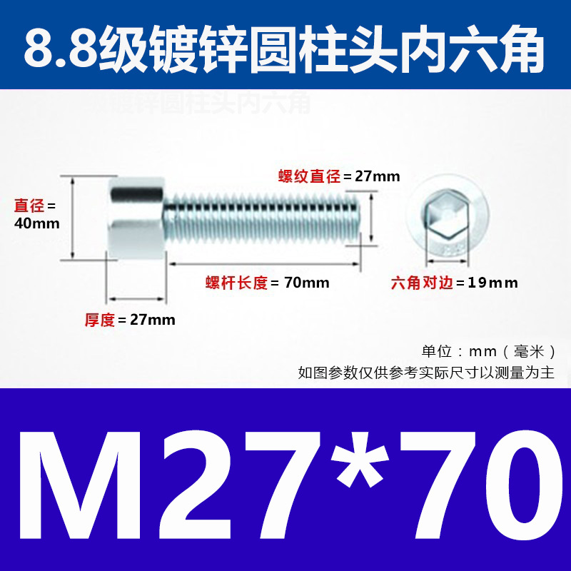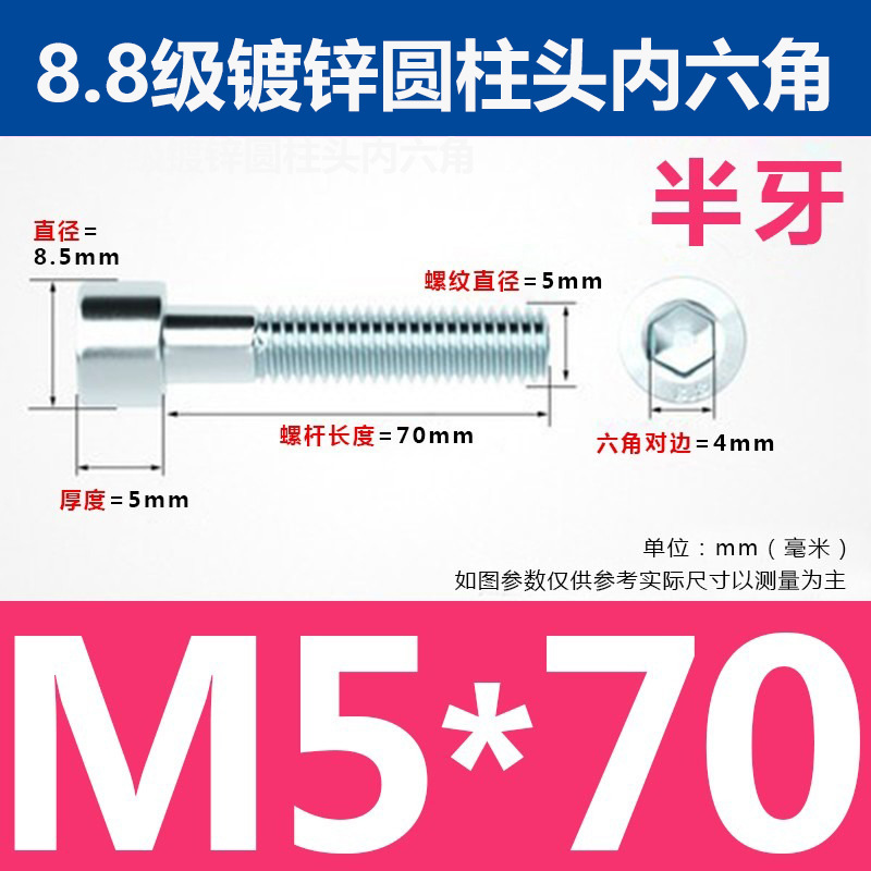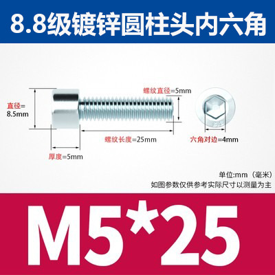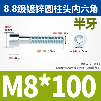国标8.8级镀锌内六角螺丝钉高强度杯头圆柱头螺栓M4M5M6M8M10M12