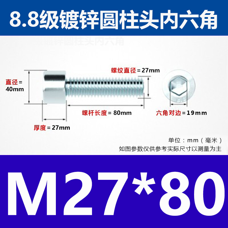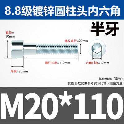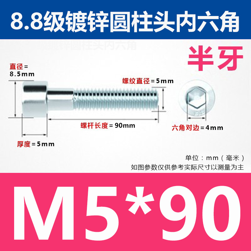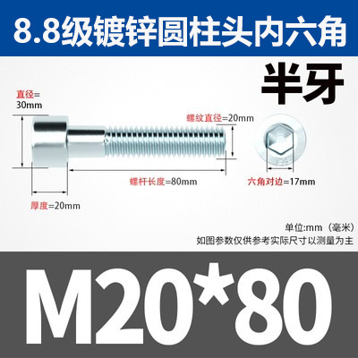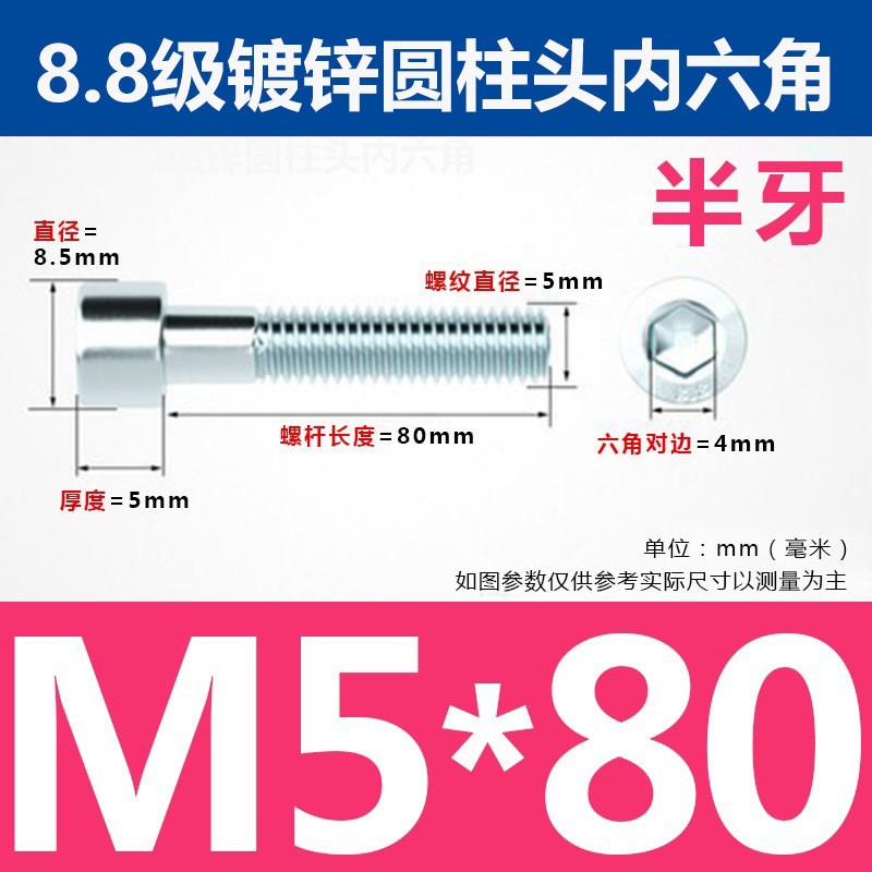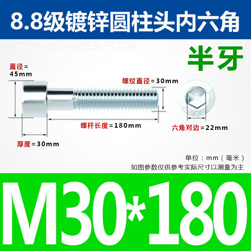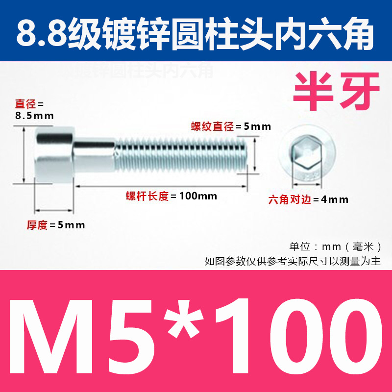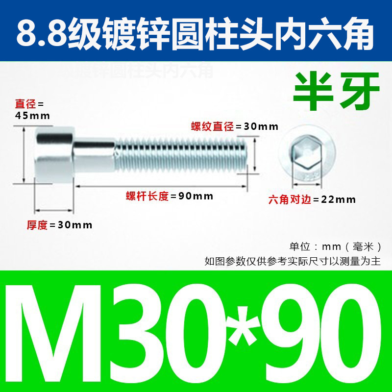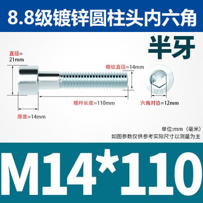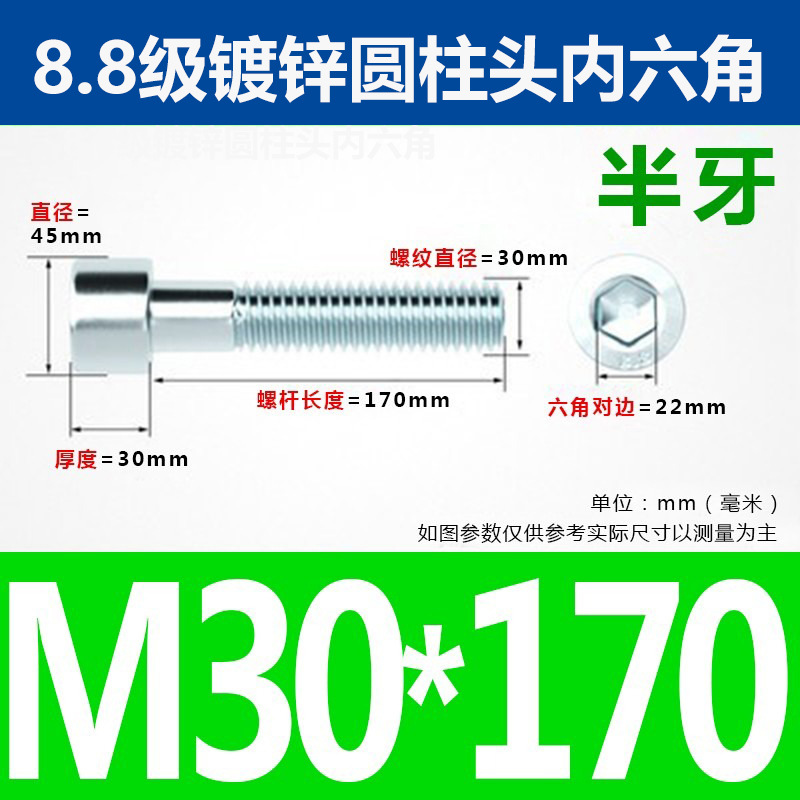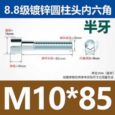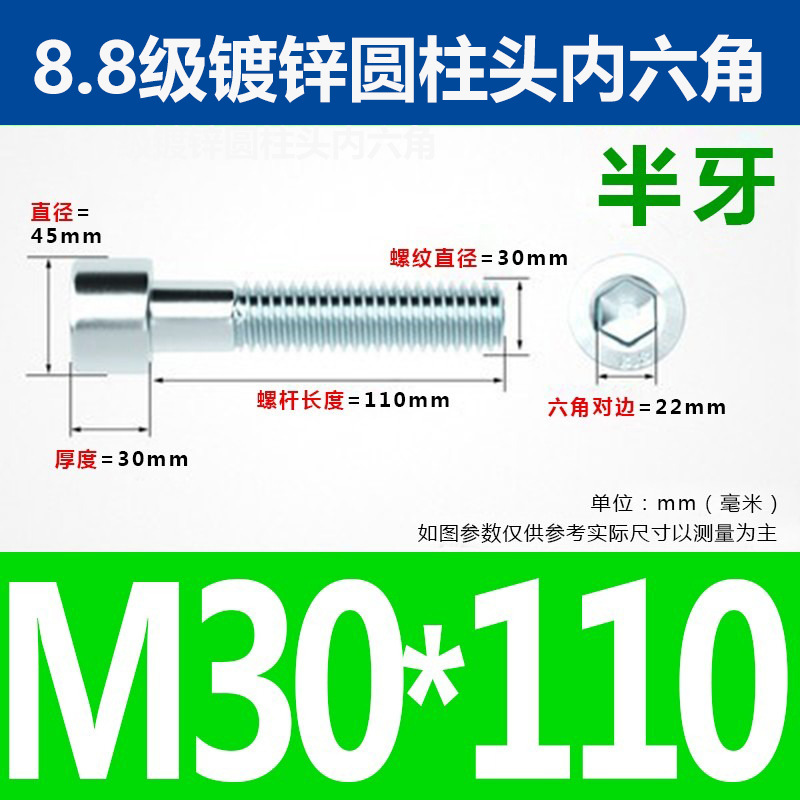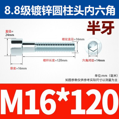 国标8.8级镀锌内六角螺丝钉高强度杯头圆柱头螺栓M4M5M6M8M10M12