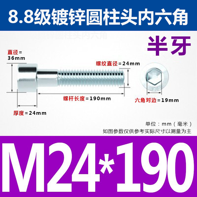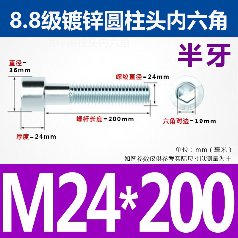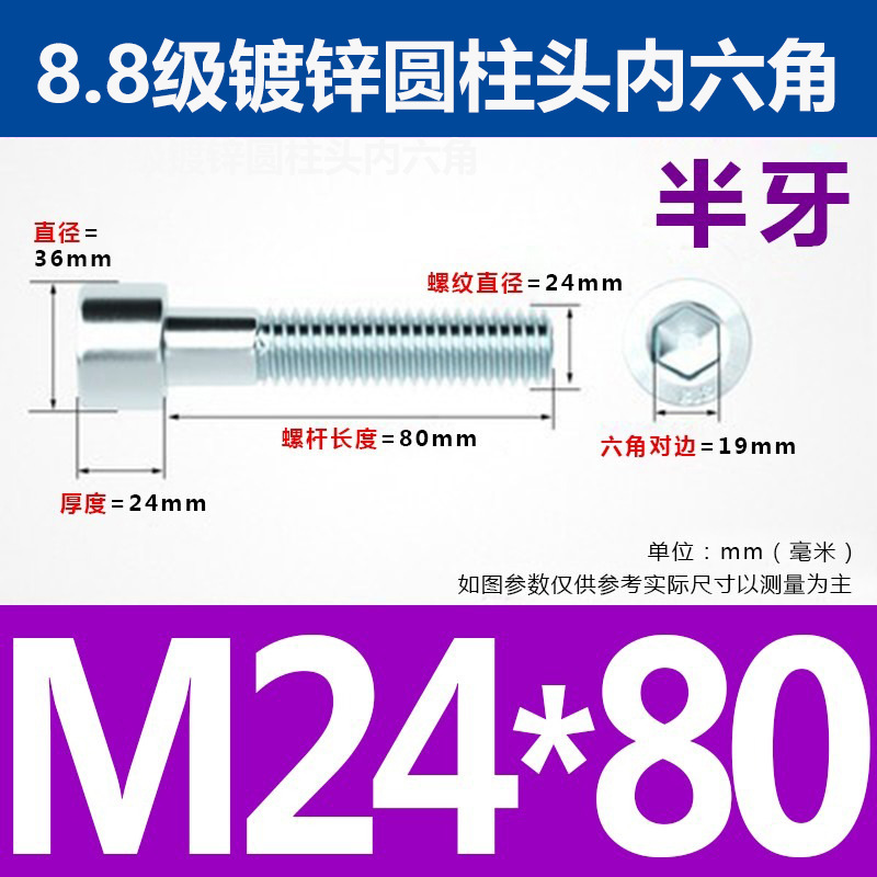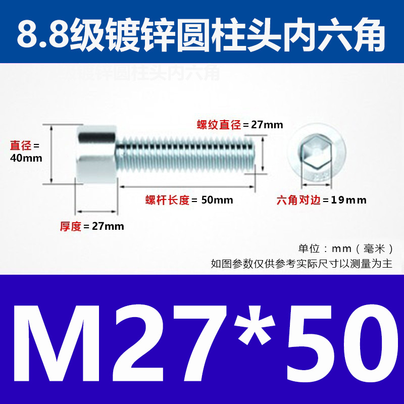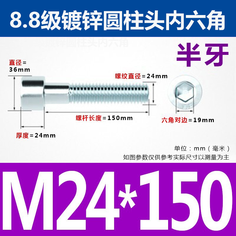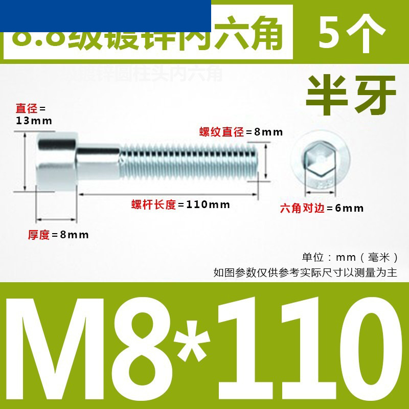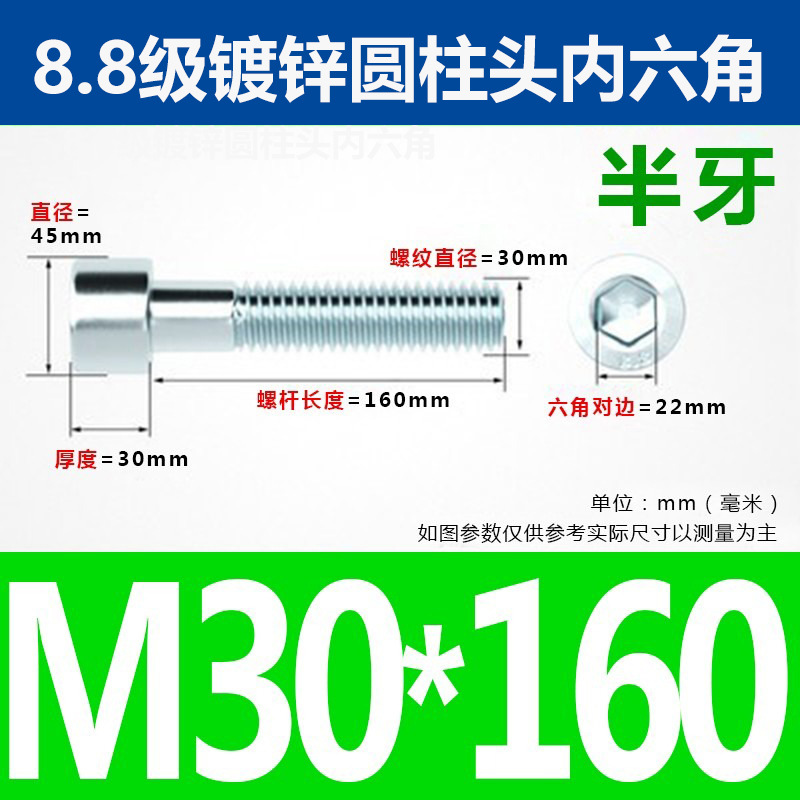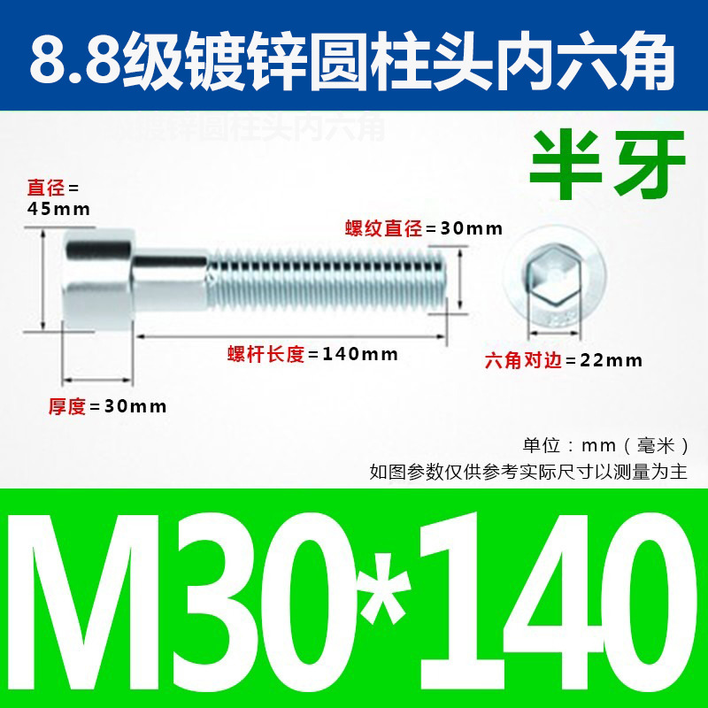 国标8.8级镀锌内六角螺丝钉高强度杯头圆柱头螺栓M4M5M6M8M10M12