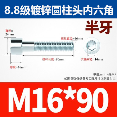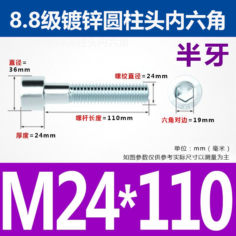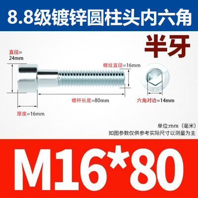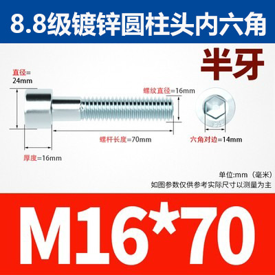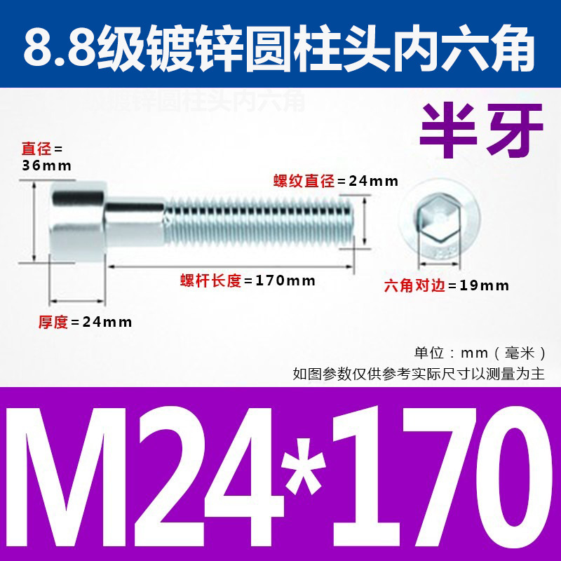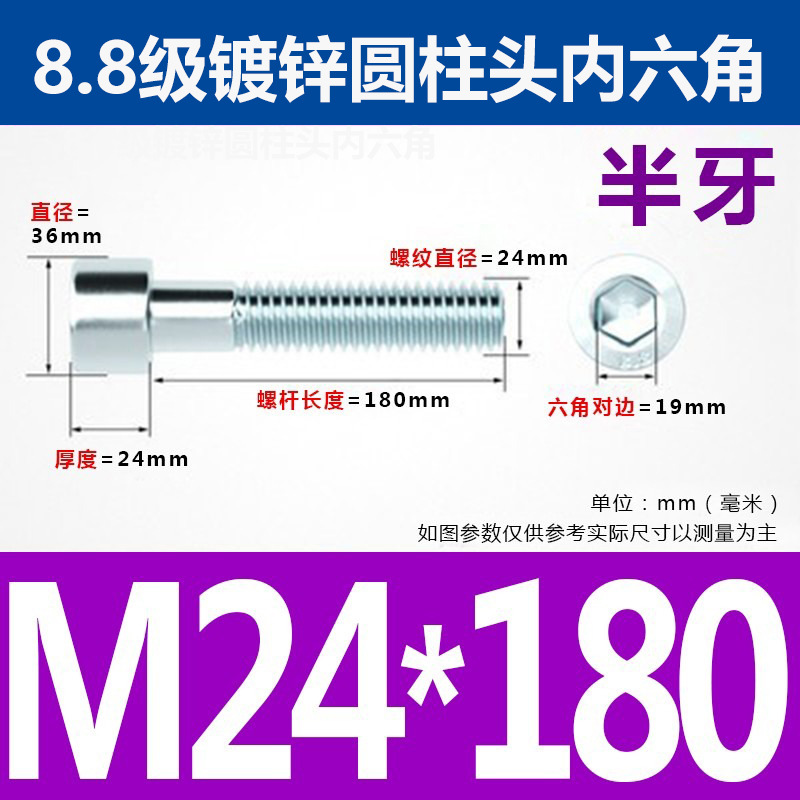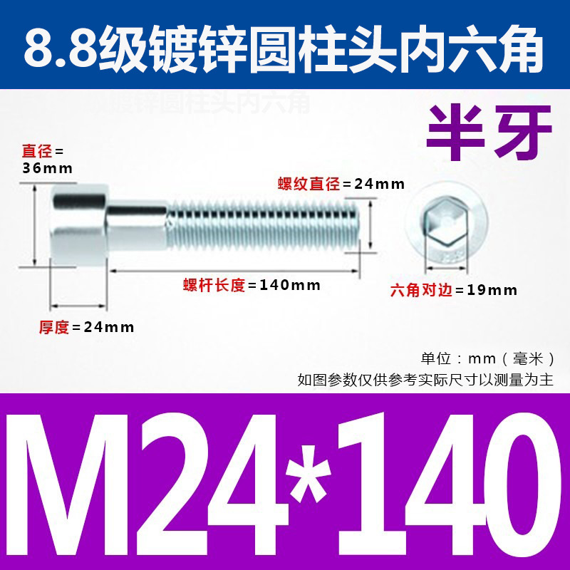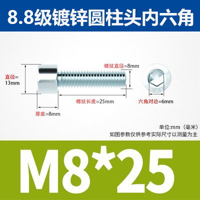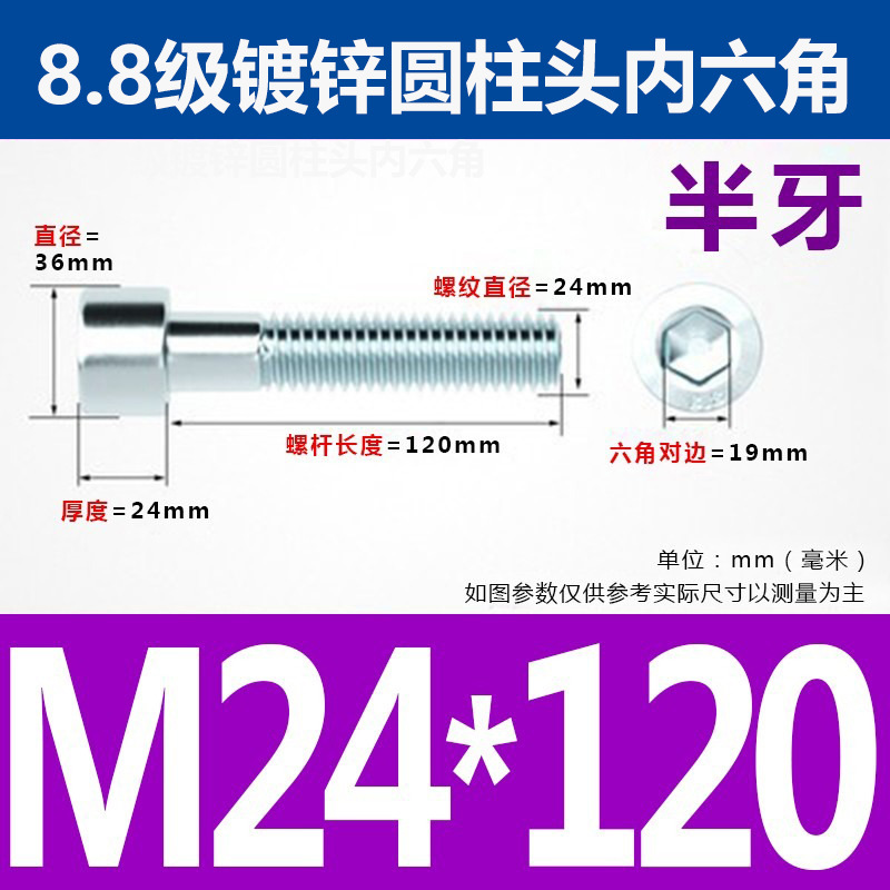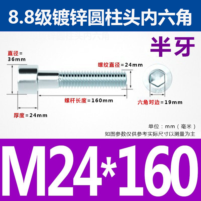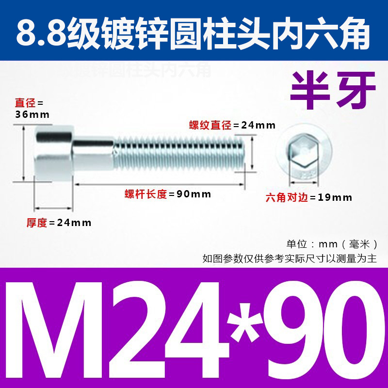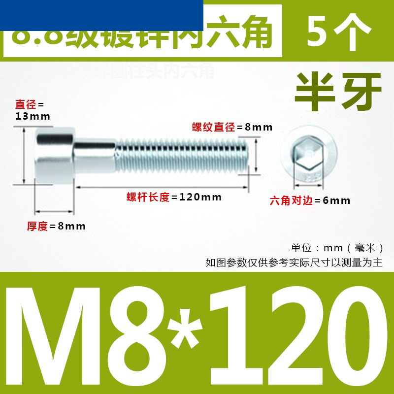 国标8.8级镀锌内六角螺丝钉高强度杯头圆柱头螺栓M4M5M6M8M10M12