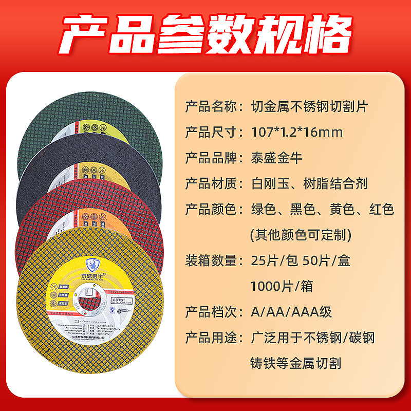 切割片100角磨机不锈钢金属磨光机砂轮片双网超薄107*1.2*16批发
