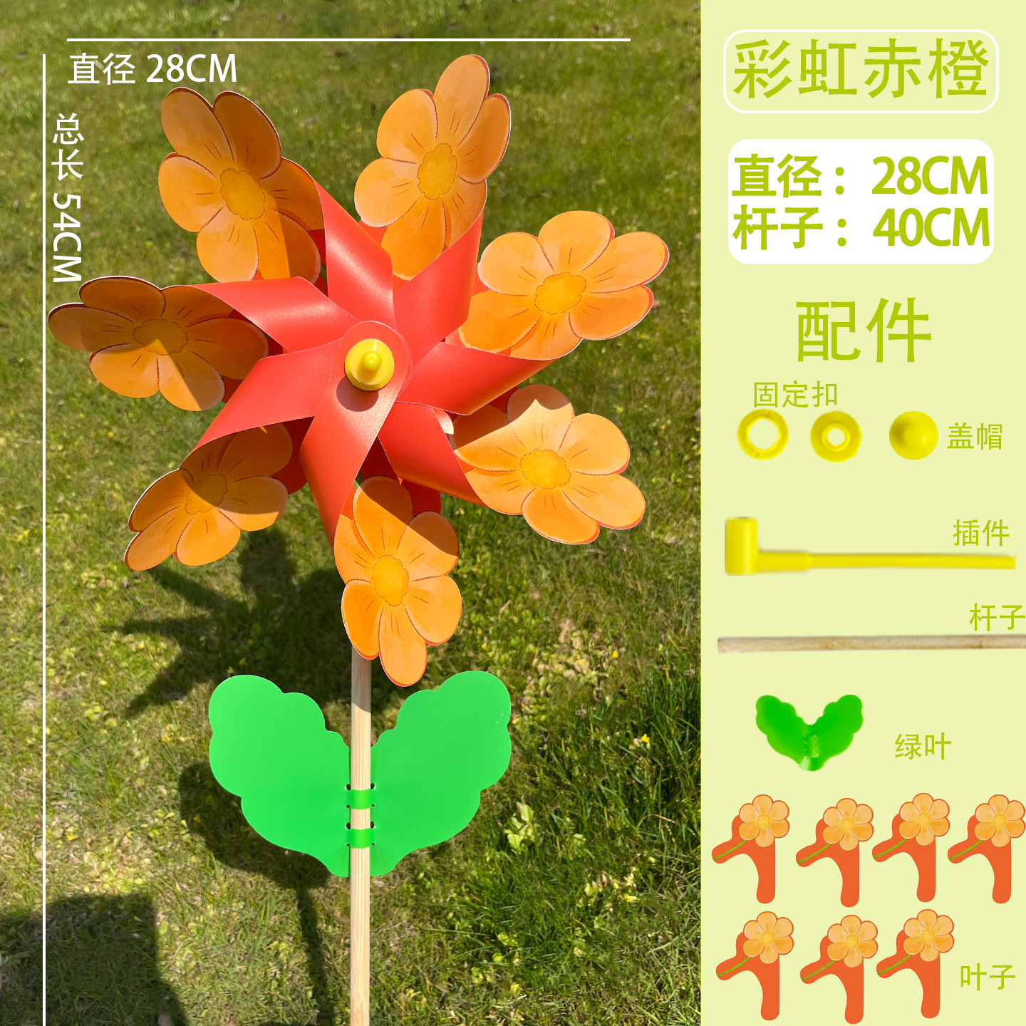 28cm【彩虹花-赤橙】40木杆有叶 / 现货(1个单价)