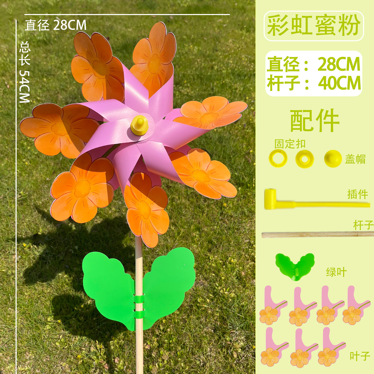 28cm【彩虹花-蜜粉】40木杆有叶 / 现货(1个单价)