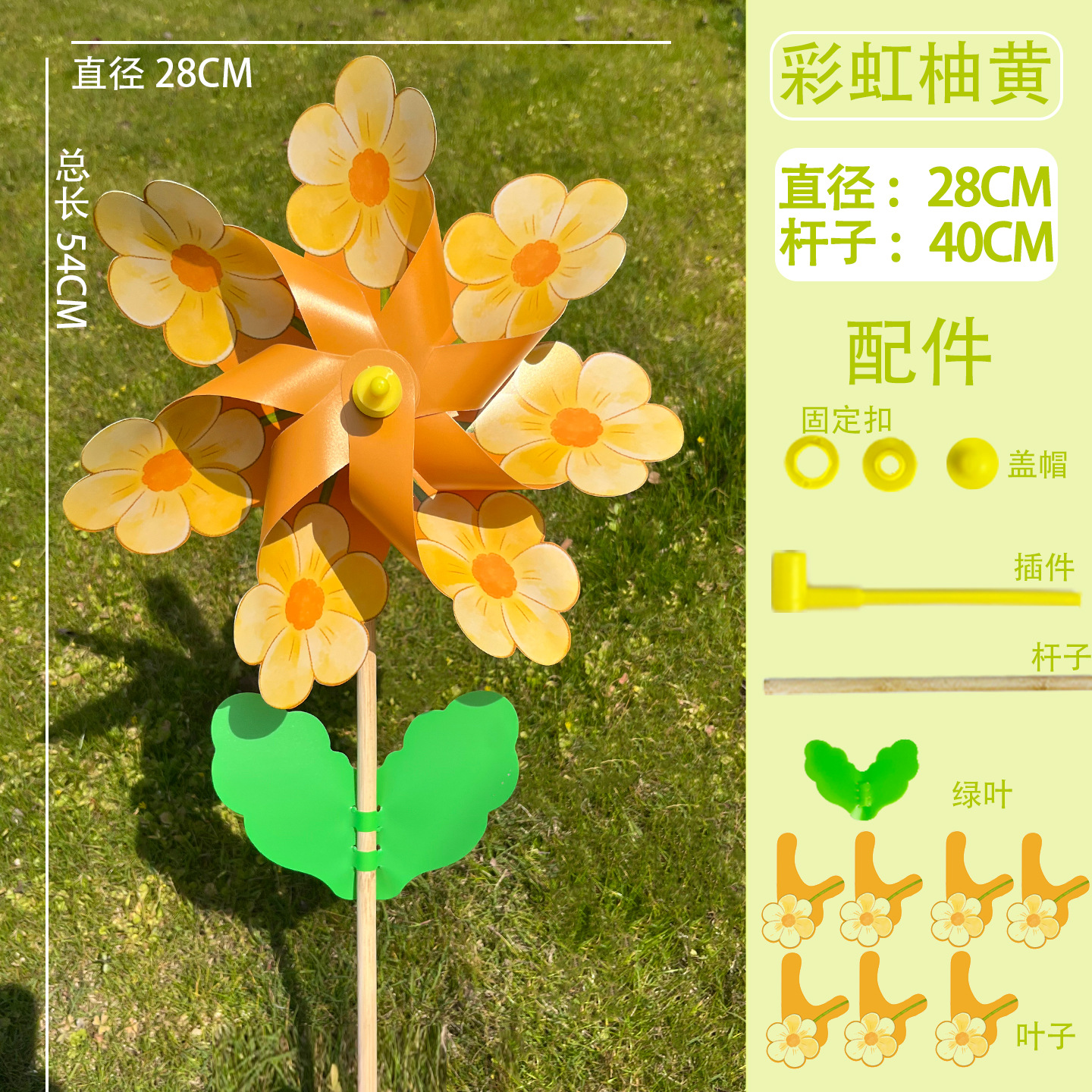28cm【彩虹花-柚黄】40木杆有叶 / 现货(1个单价)