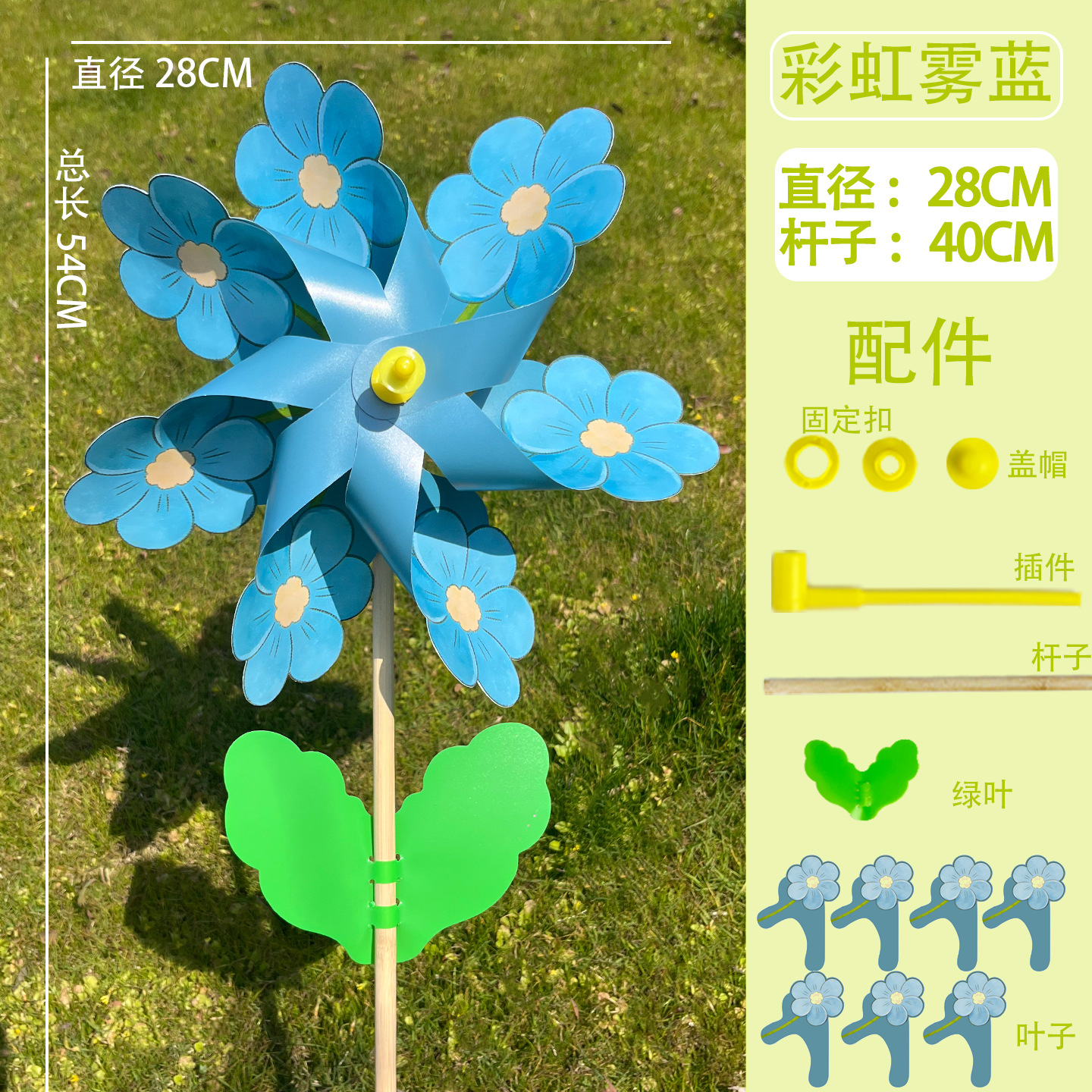 28cm【彩虹花-雾蓝】40木杆有叶 / 现货(1个单价)