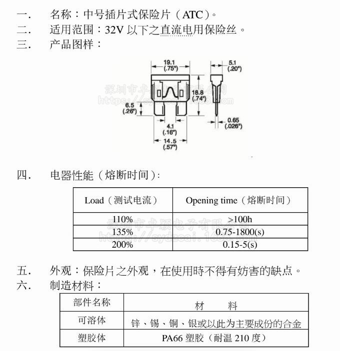 ATC汽车保险丝插片耐温保险片10A15A20A25A30A40A尼龙中号保险丝
