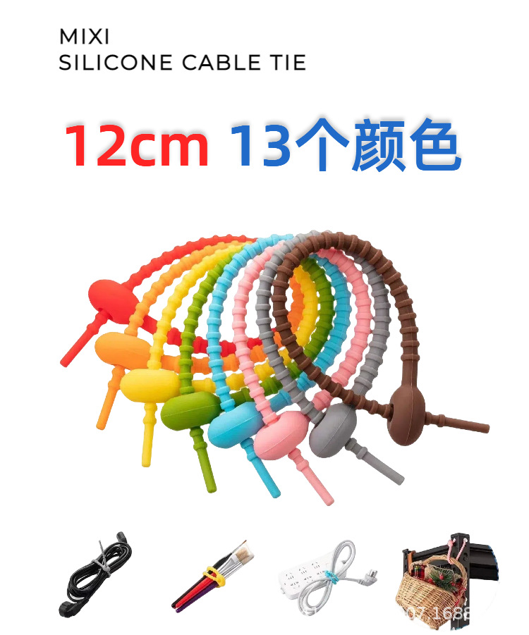 跨境硅胶扎带12cm硅胶挂绳钥匙扣束线带数据线收纳简约彩色绕线器