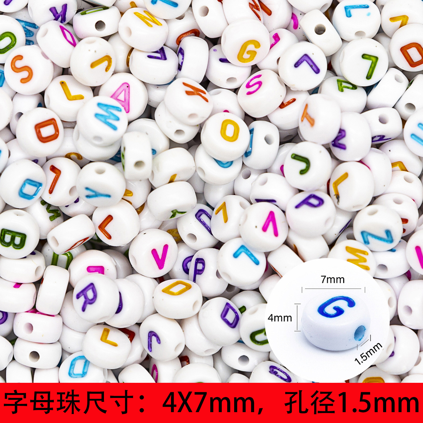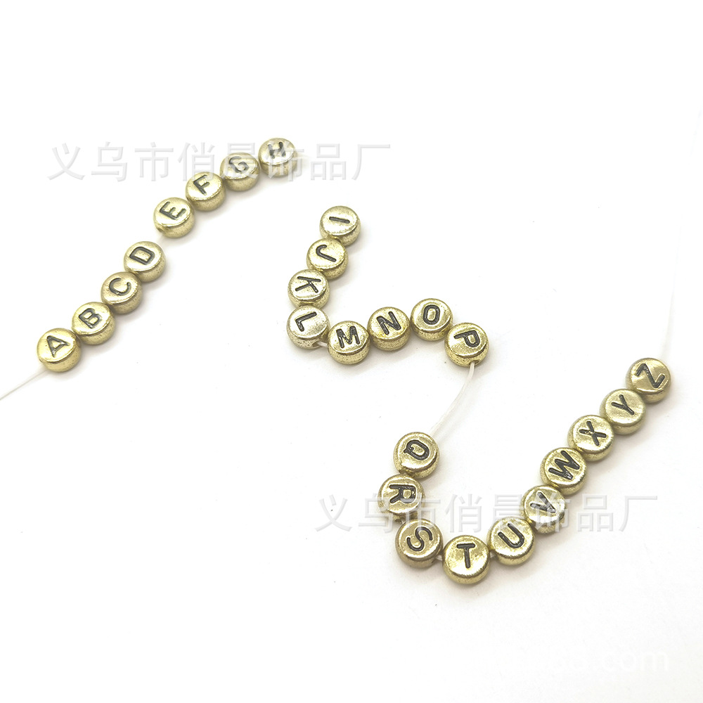 亚克力字母珠26个英文单字母自选白黑彩金夜光色散珠diy手工配件