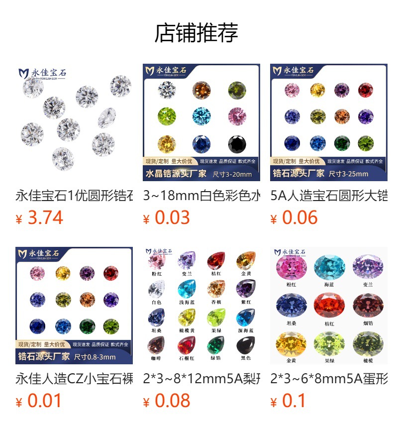 永佳宝石5A圆形锆石珠子高级感人造钻石皓石配件diy美甲配饰散批