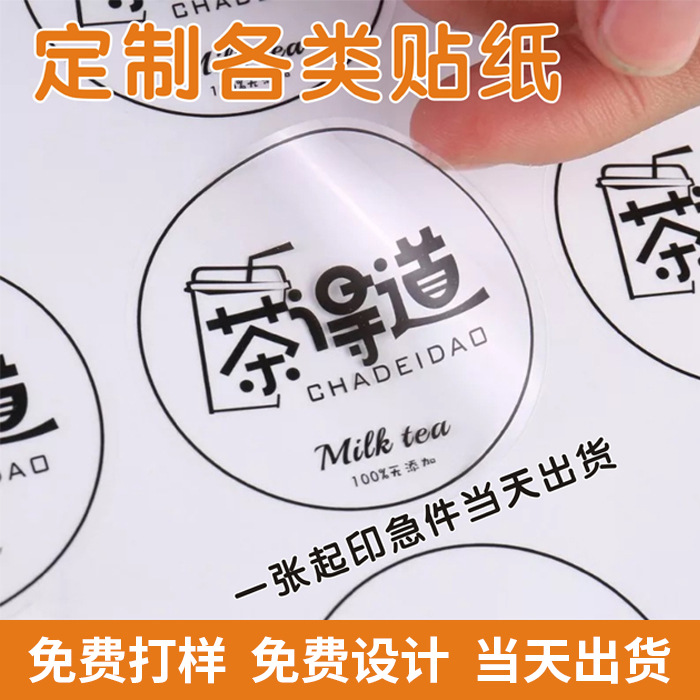 贴纸定制透明烫金茶叶奶茶咖啡logo印刷圆形封口贴不干胶标签