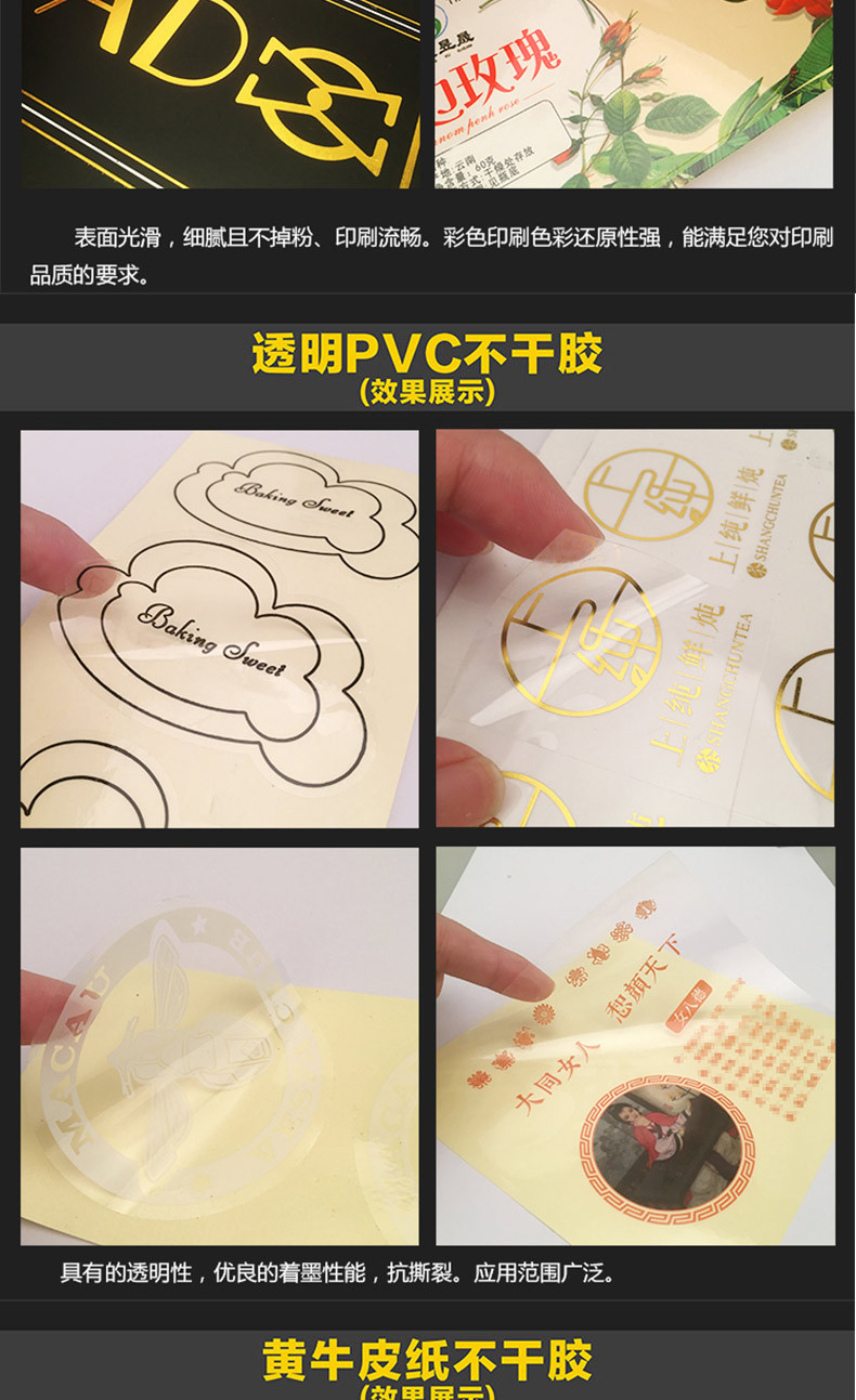 透明金色不干胶;咨询客服享优惠