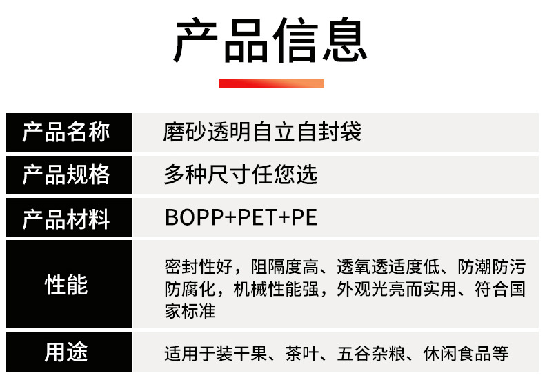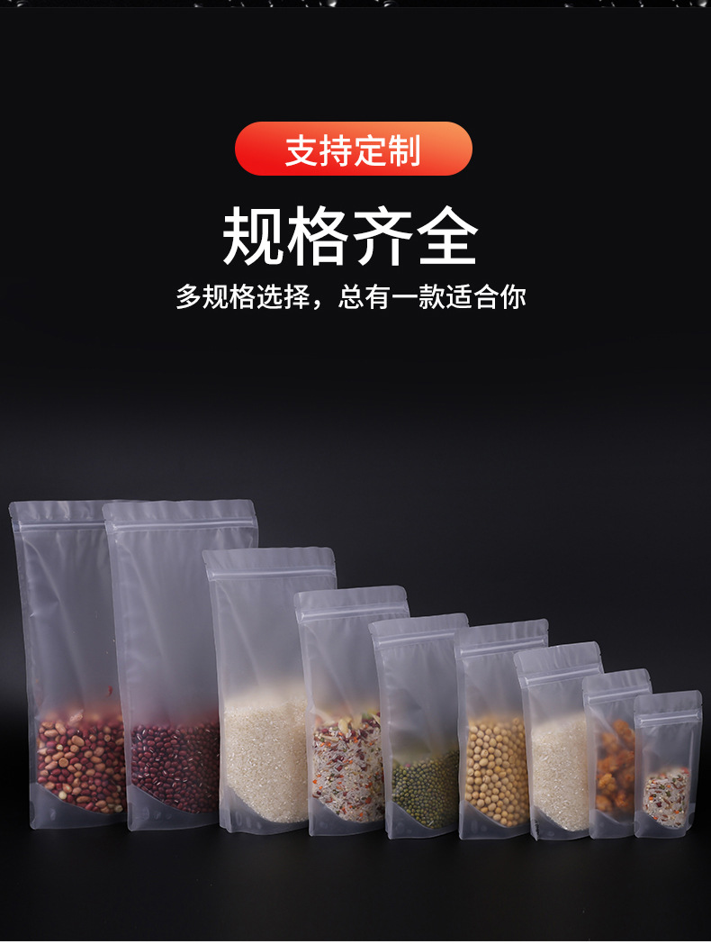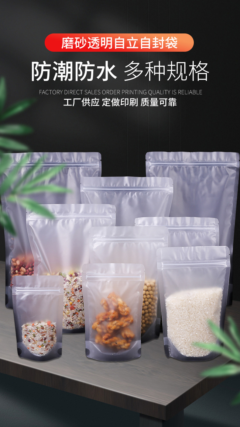 现货批发磨砂透明塑料自封袋加厚密封自立塑料袋可定制食品包装袋