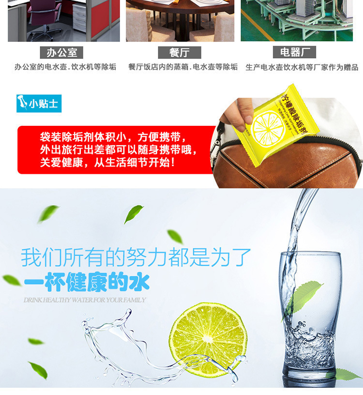 妙力捷柠檬酸除垢剂 电水壶太阳能高效水垢清洗剂10g 茶垢清洁剂