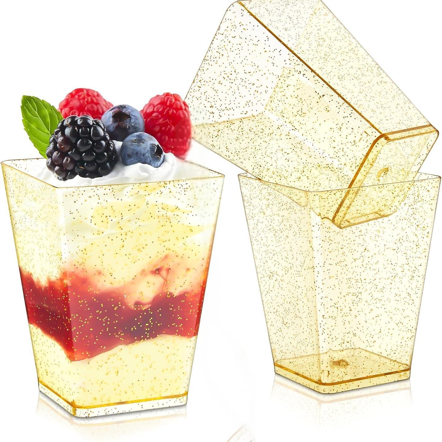 재고 일회용 투명 무스 컵 우드 브란 푸딩 컵 두꺼운 플라스틱 창조적 인 디저트 테이블 젤리 컵 디저트 컵