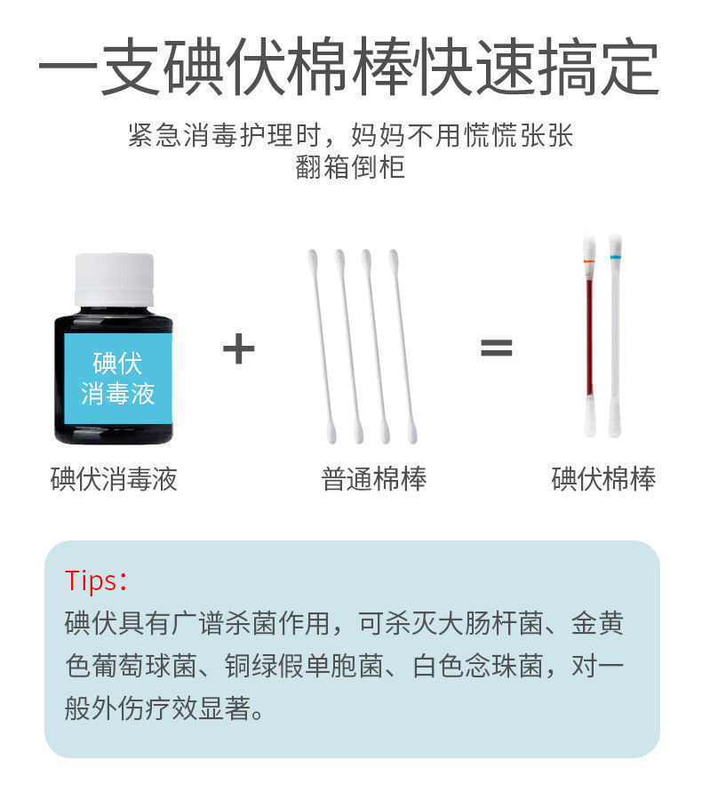 【碘伏酒精】医生推荐居家户外备用 / 【碘伏】折断式棉棒五十支