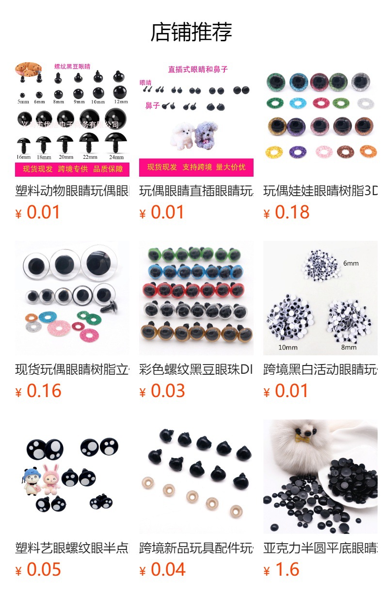 塑料动物眼睛玩偶眼睛DIY配件螺纹黑眼睛黑豆眼珠动物公仔艺眼