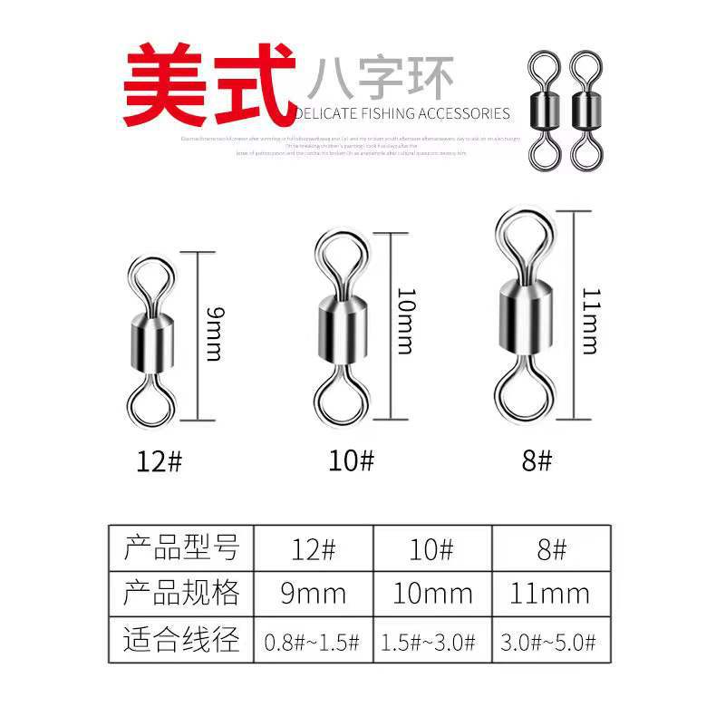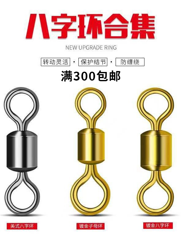 金色黑色拉力渔具小配件快速垂钓美式八字环转环连接器8字环钓鱼