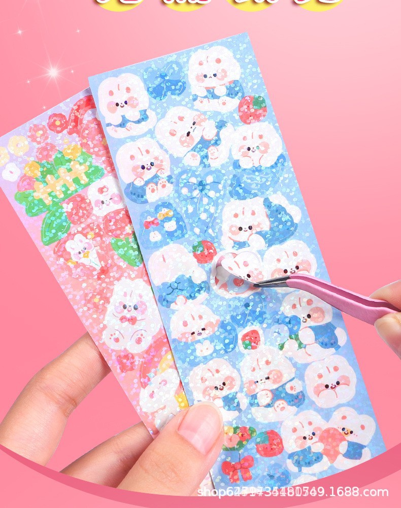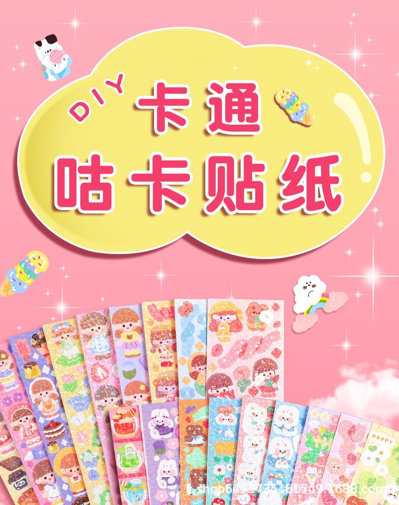 镭射咕卡贴纸儿童卡通不重复diy手帐素材装饰贴韩系少女心ins贴画