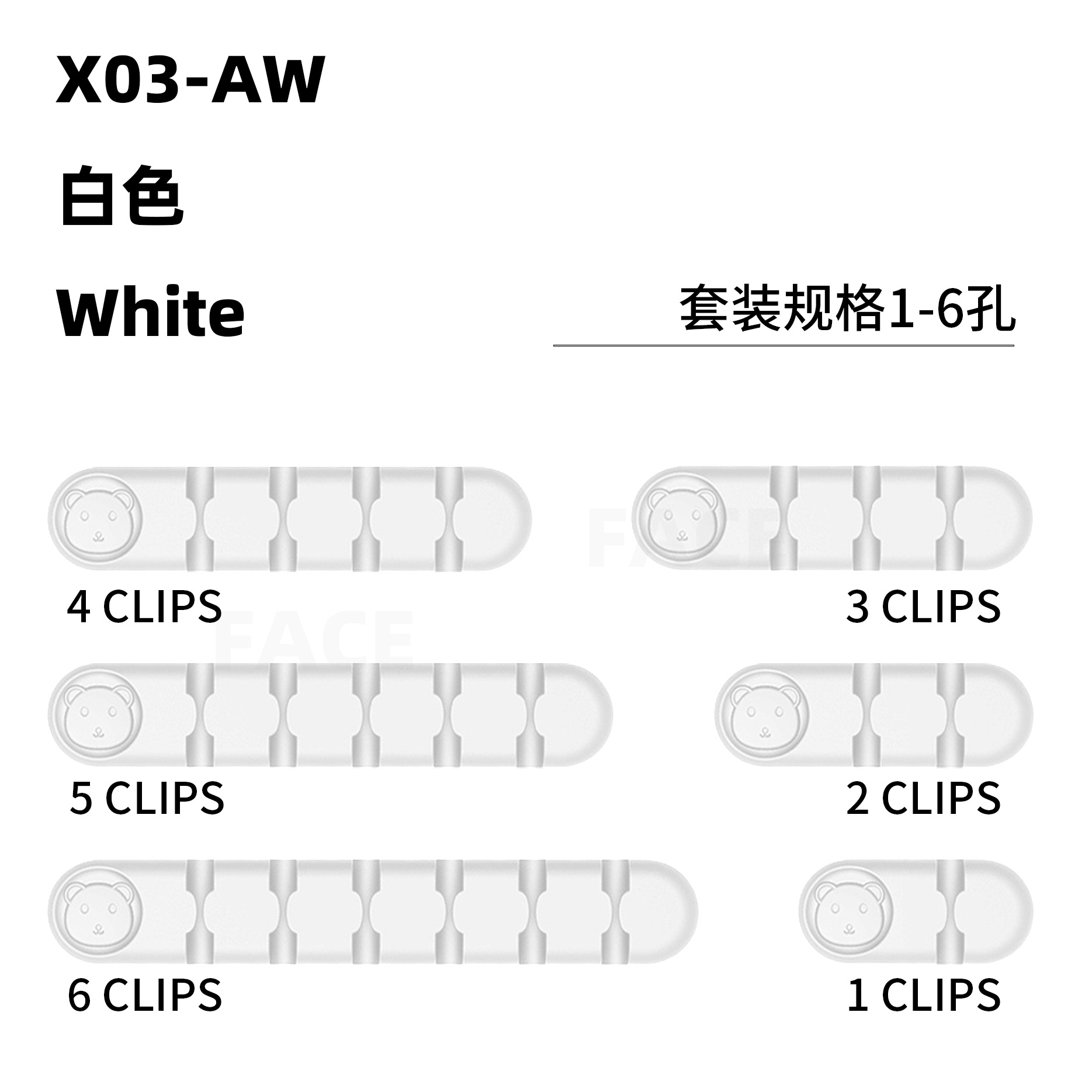小熊-1-6孔-白色-6件套