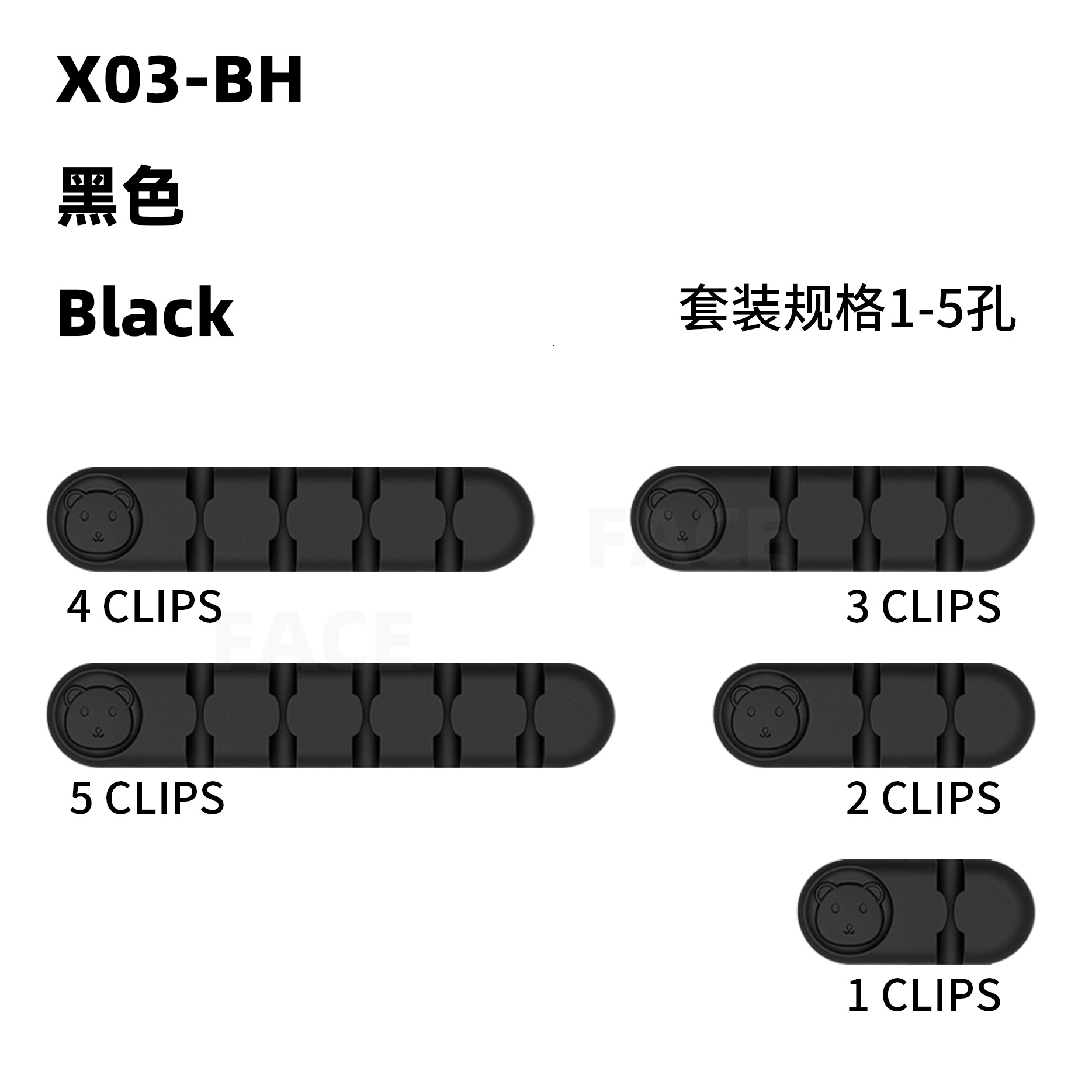 小熊-1-5孔-黑色-5件套