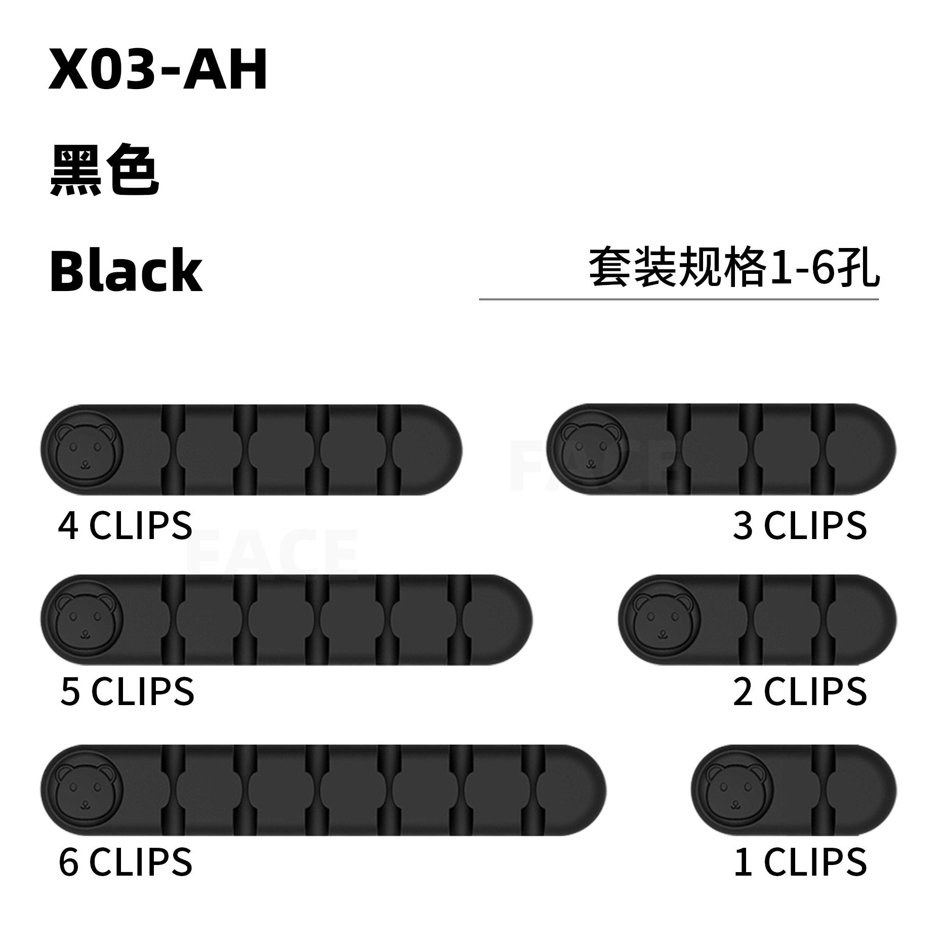 小熊-1-6孔-黑色-6件套