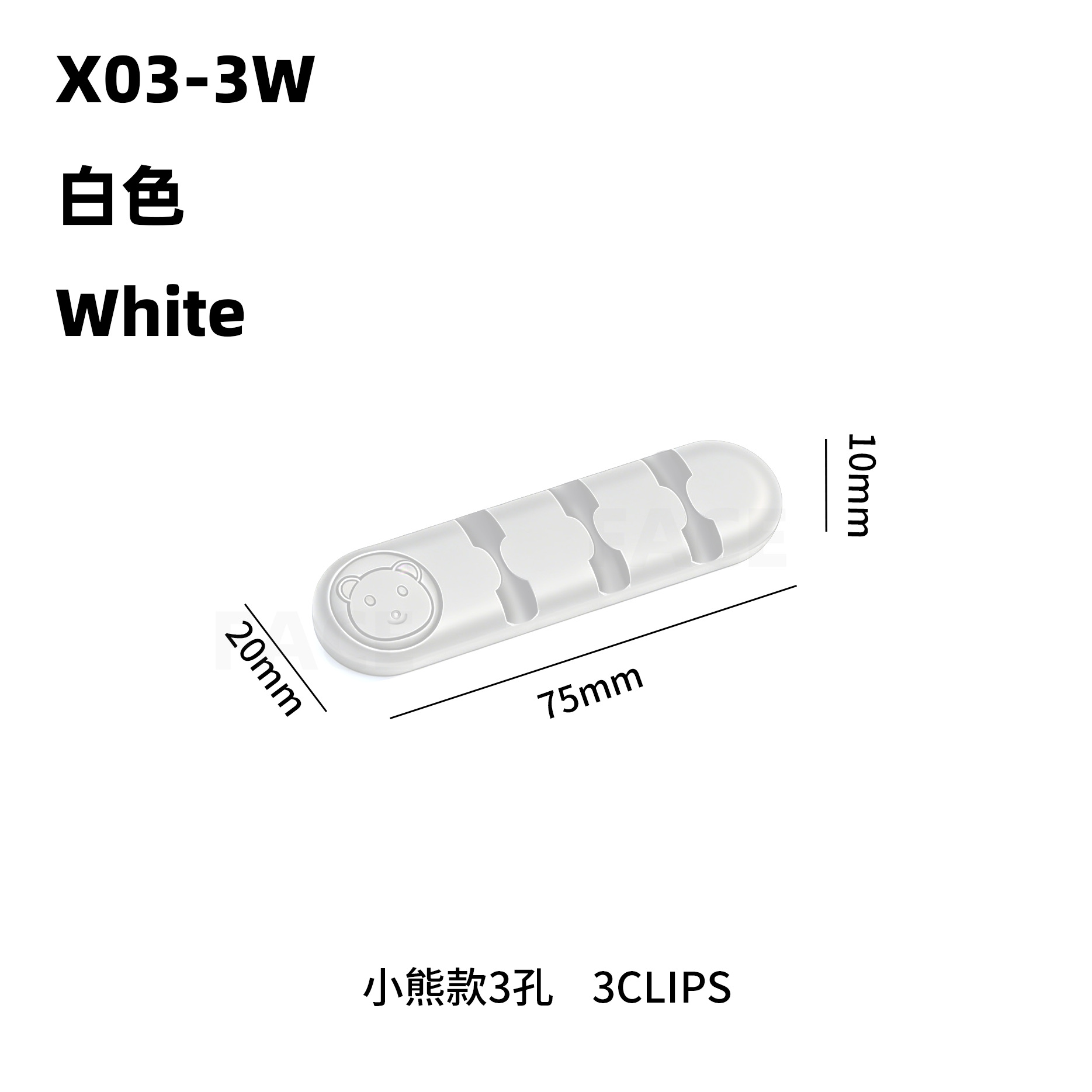 小熊-3孔-白色