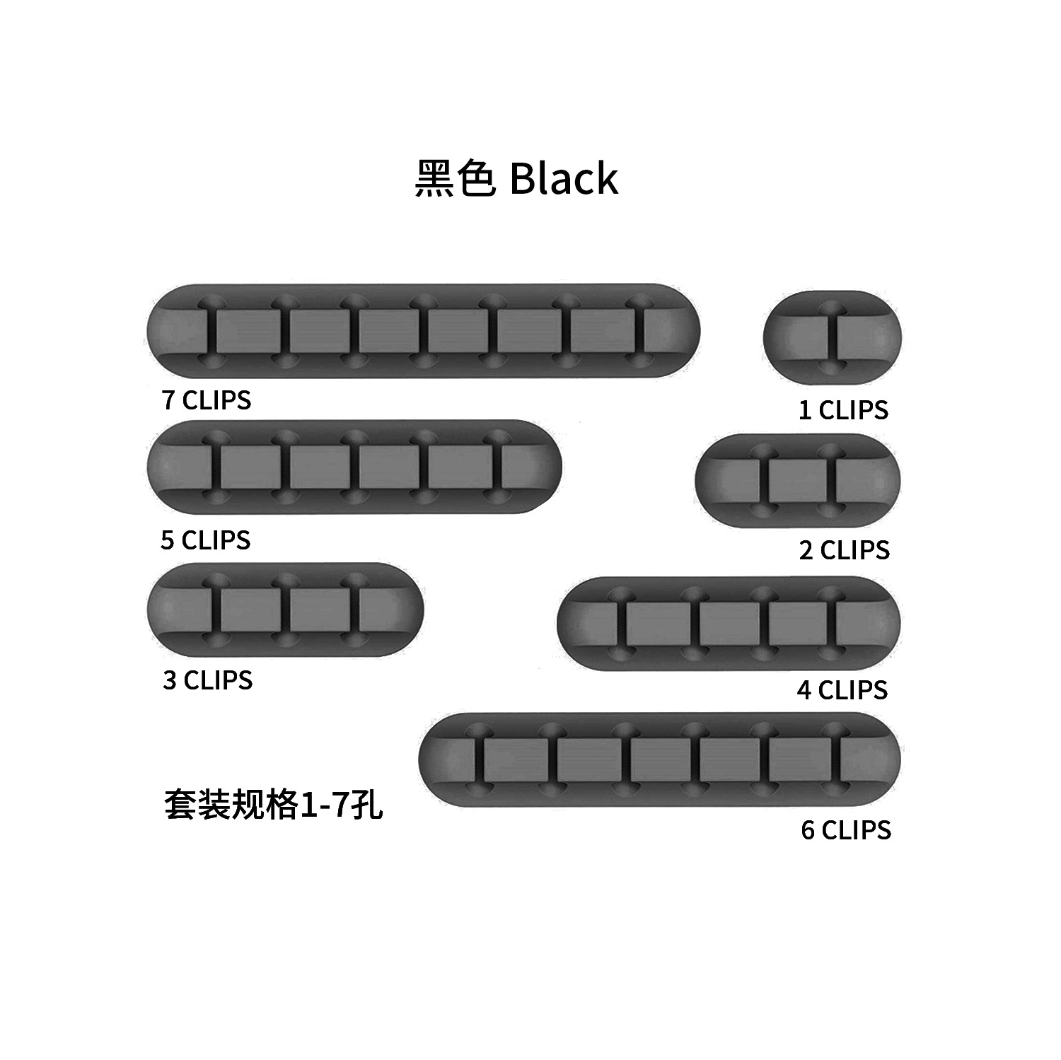 长款-黑色-1孔-7孔【7件一套】