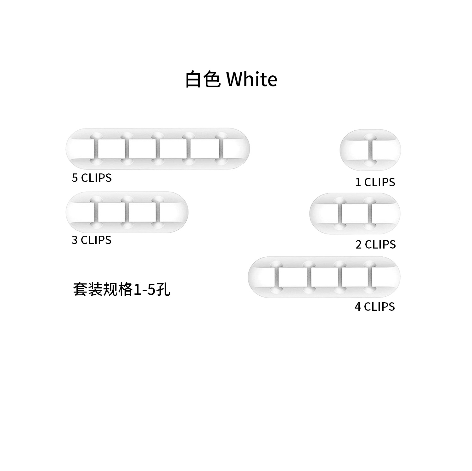 长款-白色-1孔-5孔【5件一套】