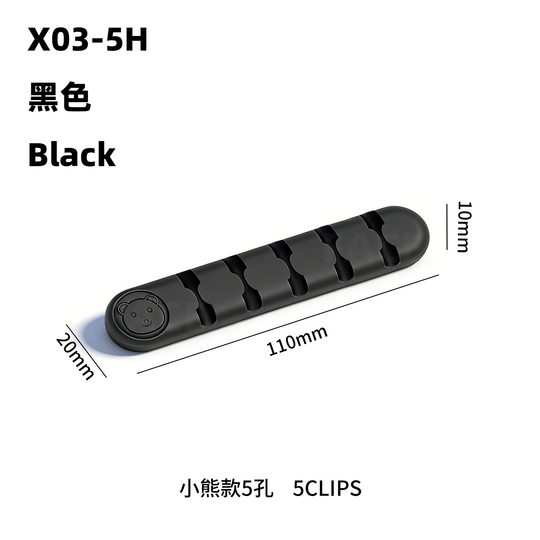 小熊-5孔-黑色
