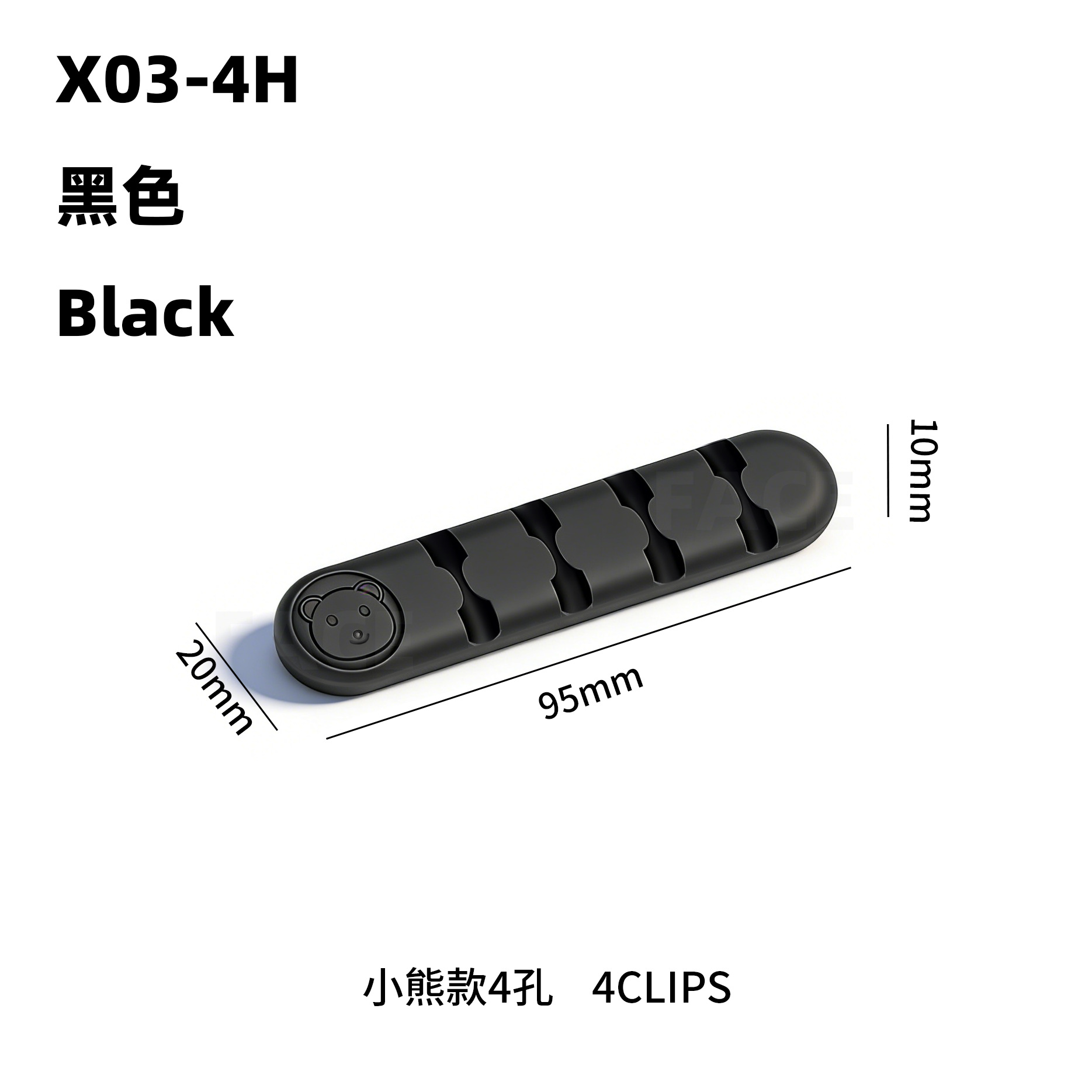 小熊-4孔-黑色