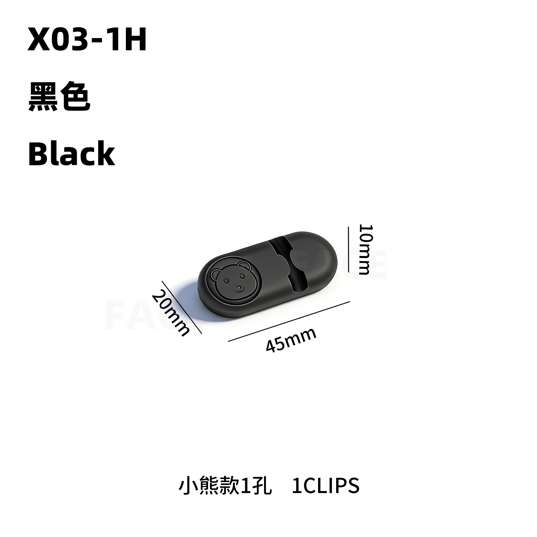 小熊-1孔-黑色