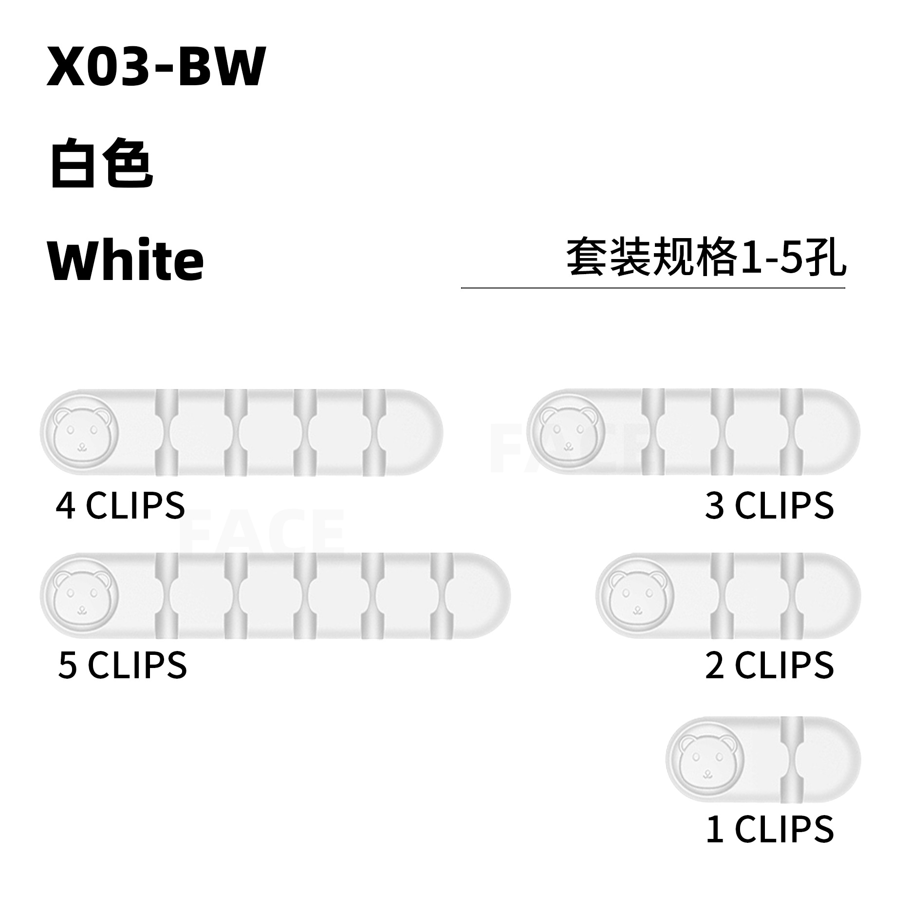 小熊-1-5孔-白色-5件套