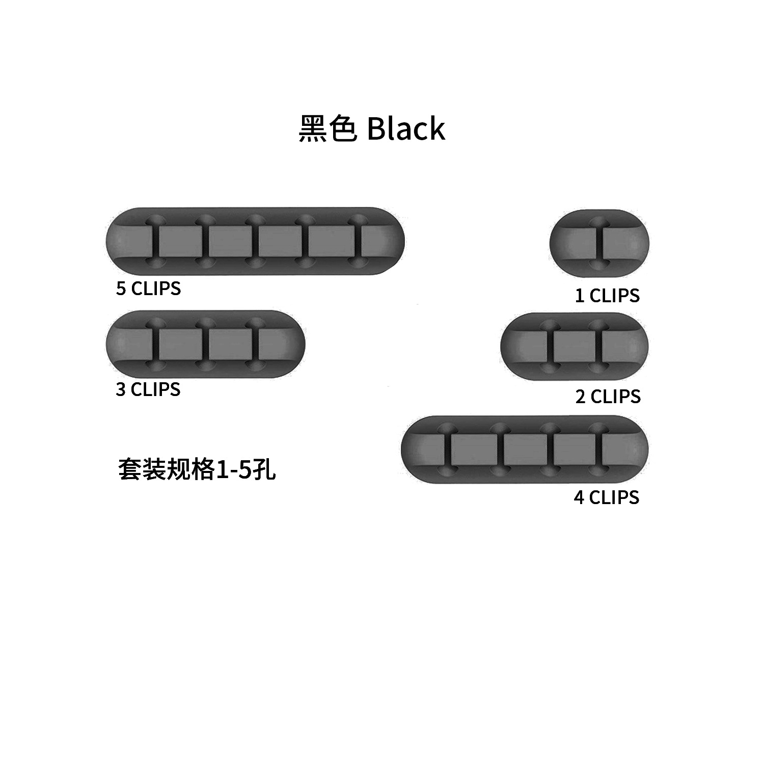 长款-黑色-1孔-5孔【5件一套】
