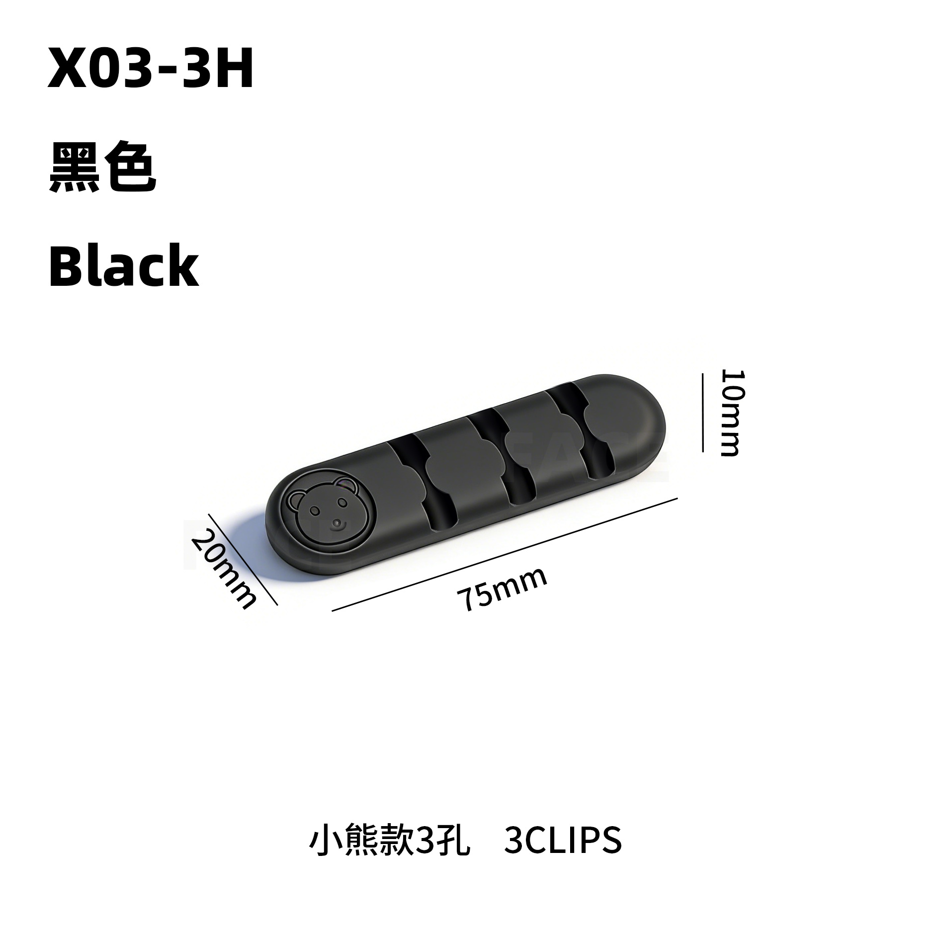 小熊-3孔-黑色