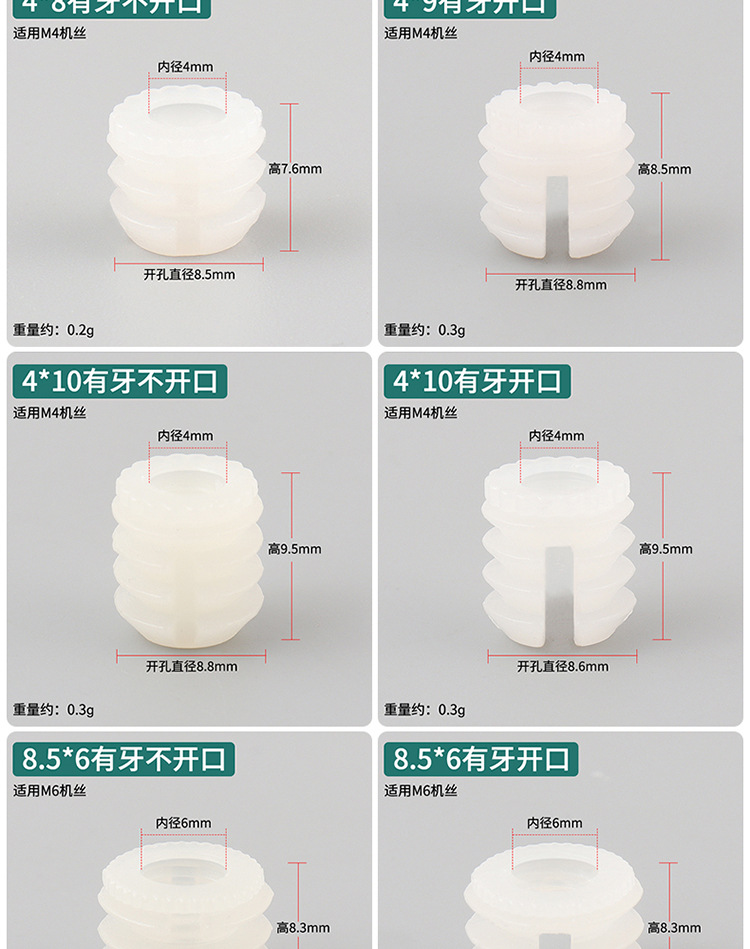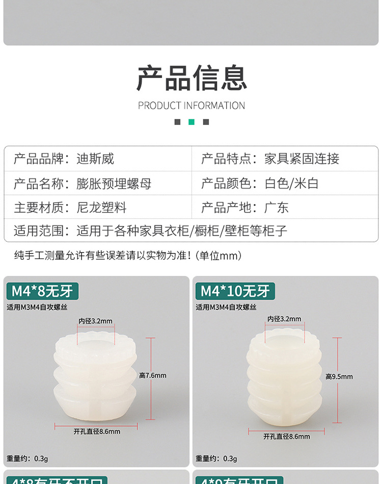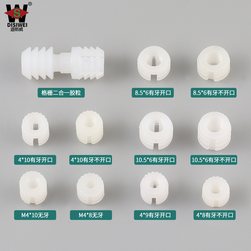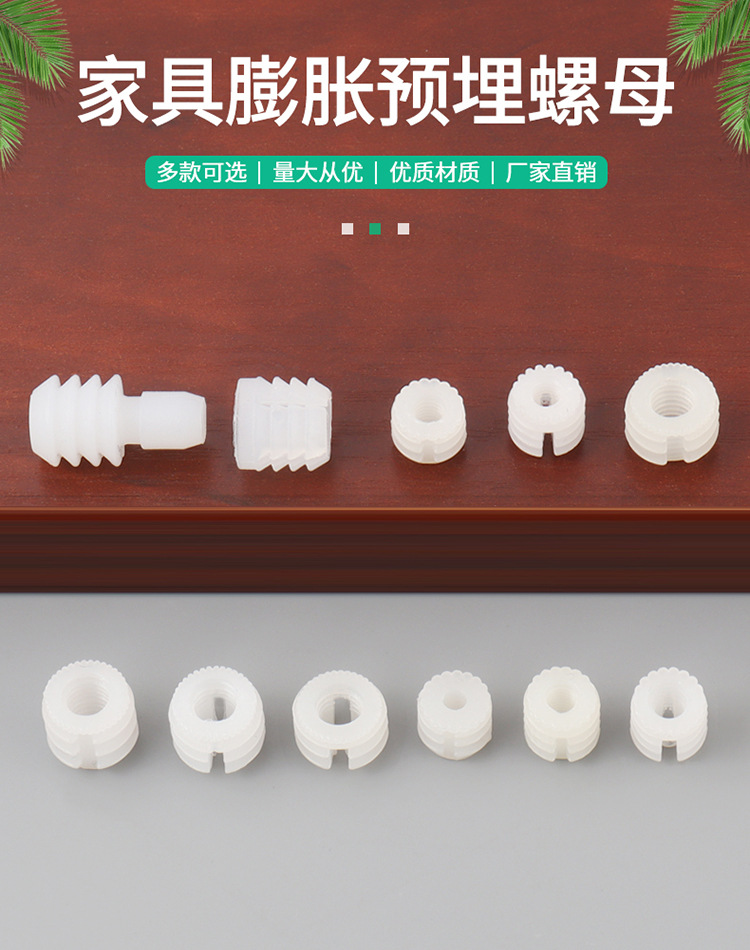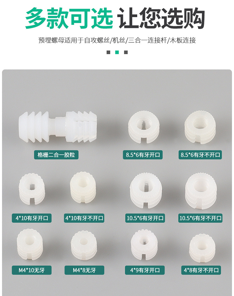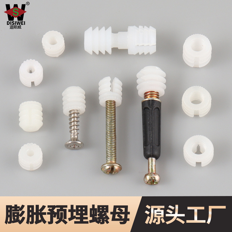 三合一预埋件膨胀塑料螺母铰链自攻螺丝胶粒尼龙拉手开口预埋件