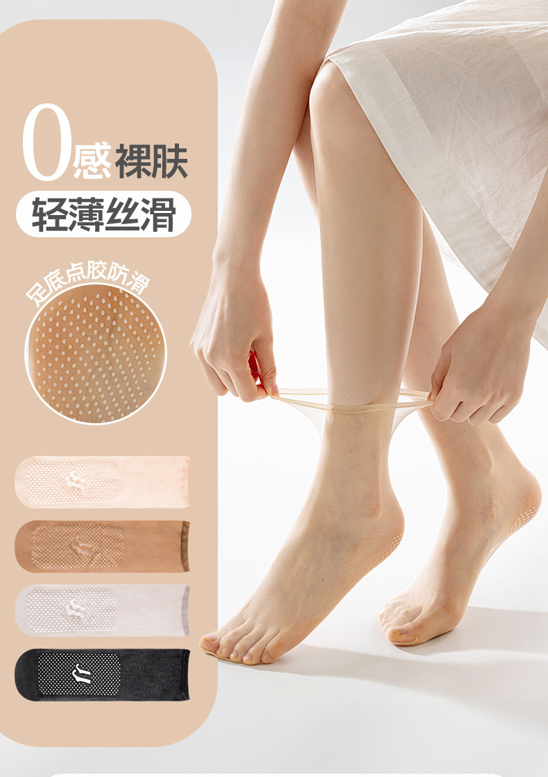 升级点胶水晶丝短袜【肤色】